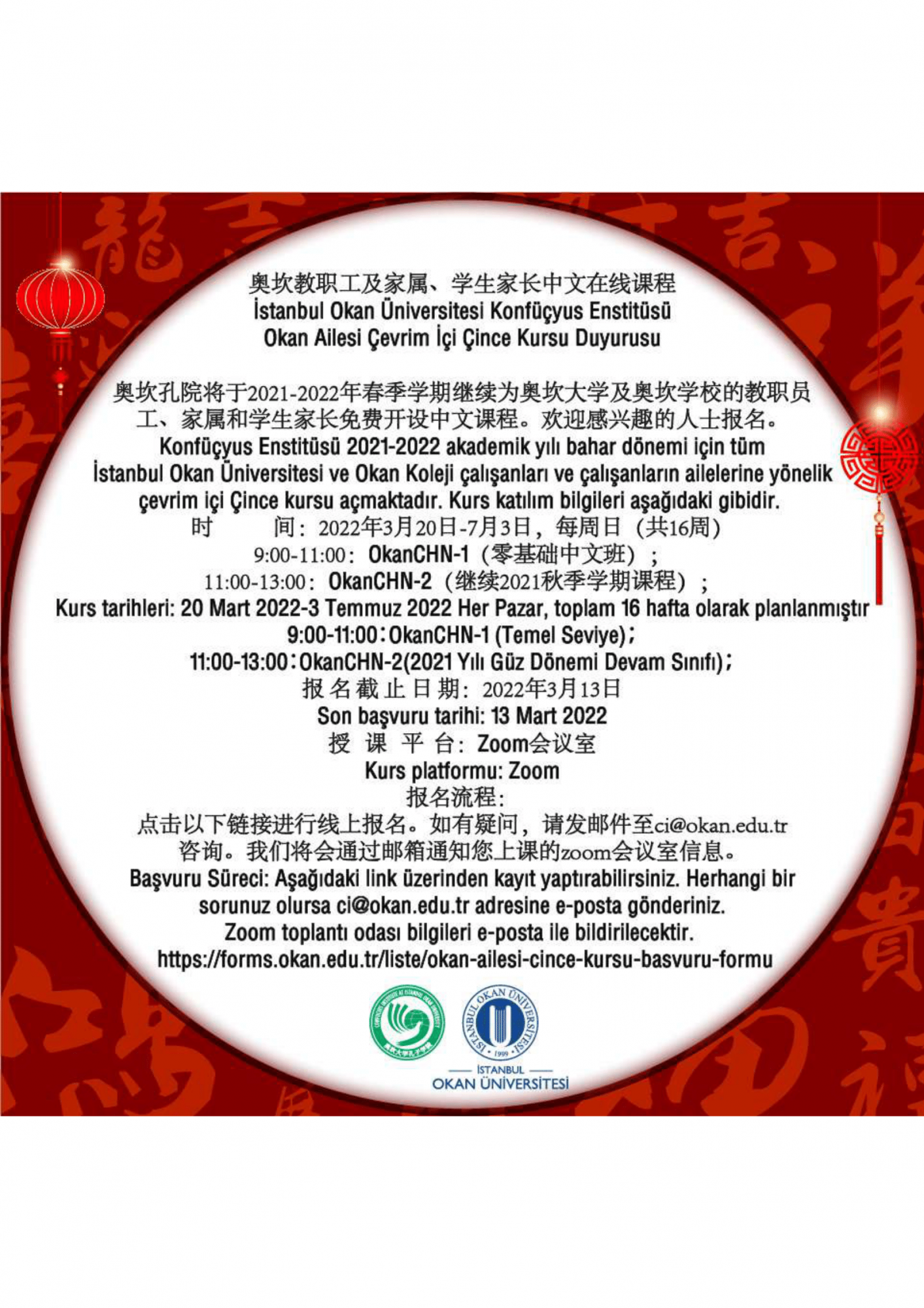 2021-2022 Okan ailesi bahar dönemi Çince Kursu