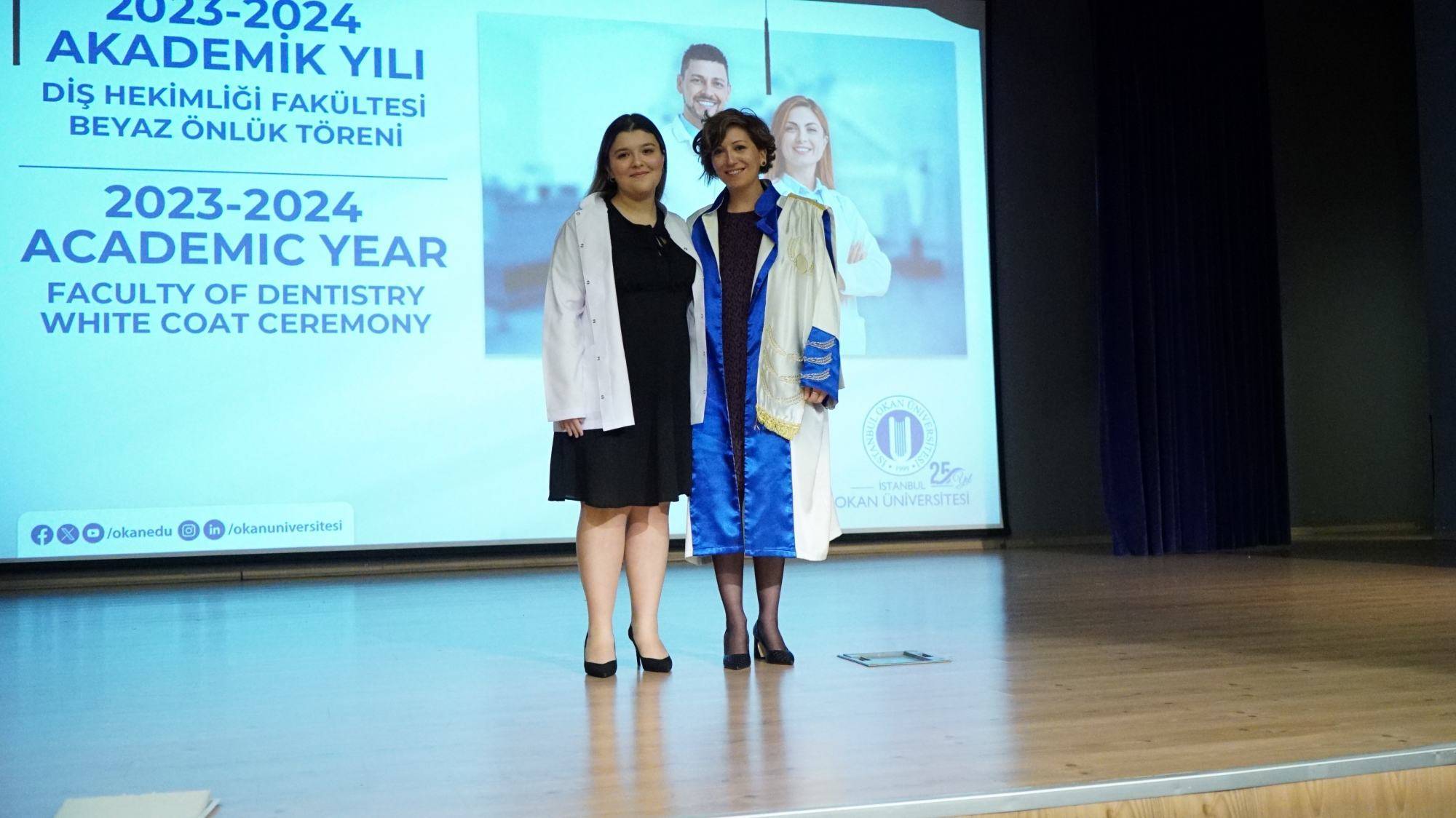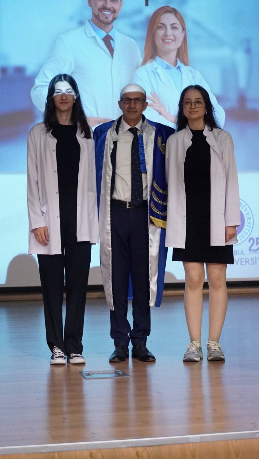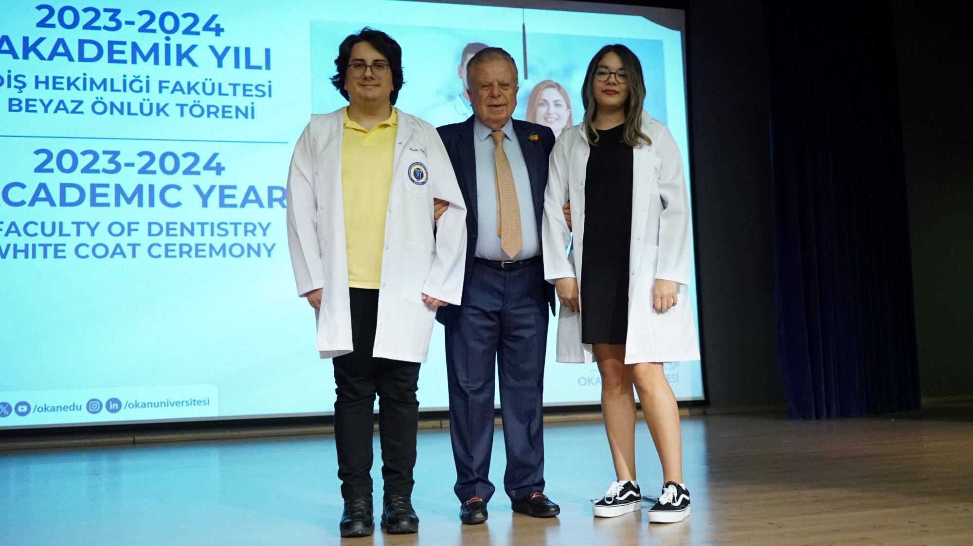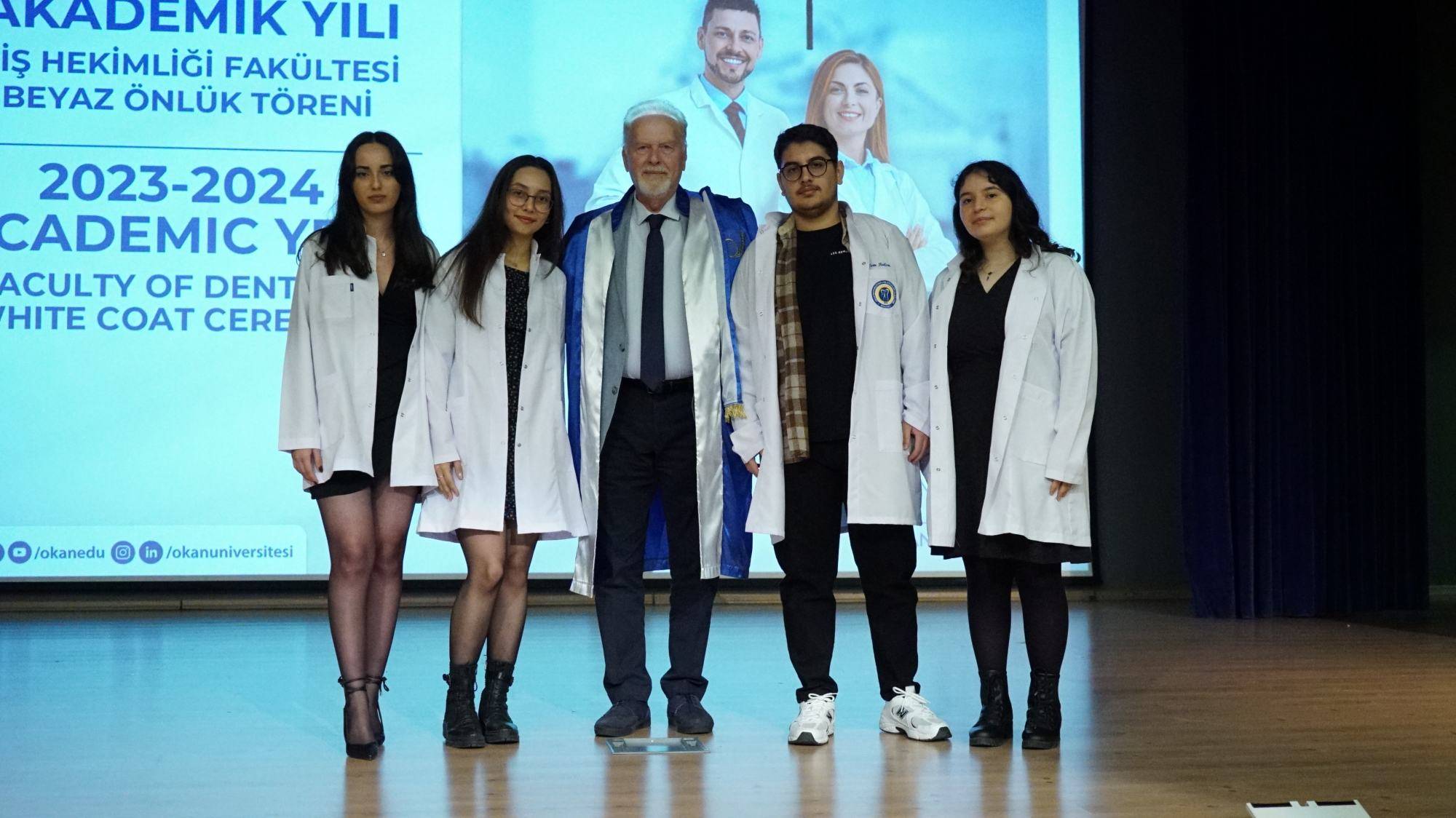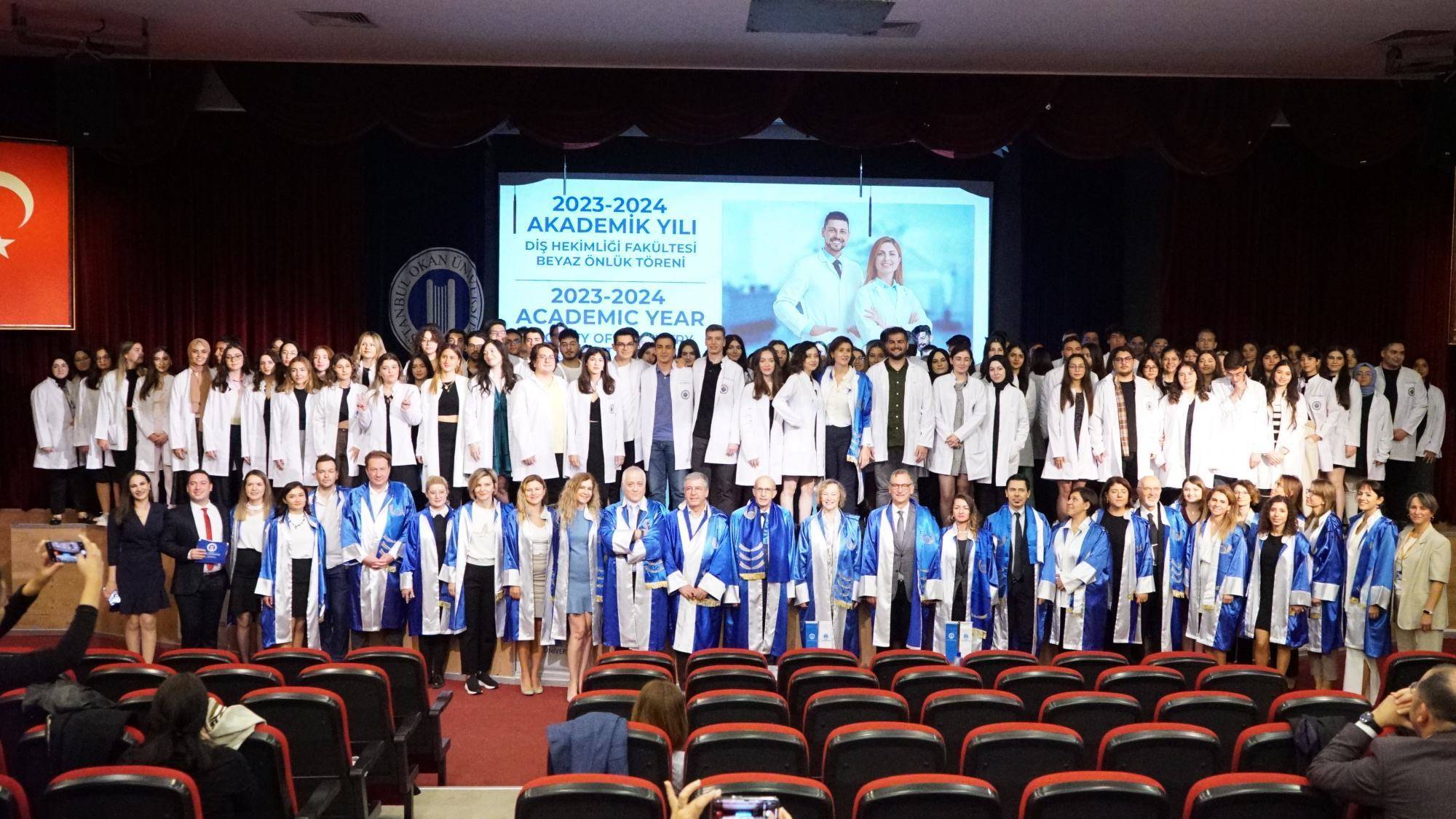 Diş Hekimliği Fakültemizin 1. sınıf öğrencilerinin Geleneksel Beyaz Önlük Giyme Töreni’ni 12 Kasım 2023 tarihinde Tuzla Kampüsü Sağlık Bilimleri Eğitim Kompleksi’nde bulunan Bekir Okan Konferans Salonu’nda gerçekleştirildi. Törene, Mütevelli Heyeti Başkanımız Bekir Okan, Rektörümüz Prof. Dr. Güliz Muğan, Mütevelli Heyet Başkan Yardımcımız Işıl Okan Gülen, Rektör Yardımcılarımız, üniversitemizdeki diğer fakültelerin Dekanları, Fakültemizin Öğretim Üyeleri ile değerli öğrencilerimiz ve aileleri katılım göstermiştir. Fakülte Dekanımız Prof. Dr. Deniz Gökçe Meral’in konuşması ile başlayan törenimiz, Dekanımızı takiben Mütevelli Heyet Başkanımız Bekir Okan, Rektörümüz Prof. Dr. Güliz Muğan ve Mütevelli Heyet Başkan Yardımcımız Işıl Okan Gülen’in fakültemize derece ile giren öğrencilerimize beyaz önlüklerini giydirmesi ile devam etti. Tören, tüm öğrencilerimizin önlüklerini giymesi ve toplu fotoğraf çekimi ile sona erdi.