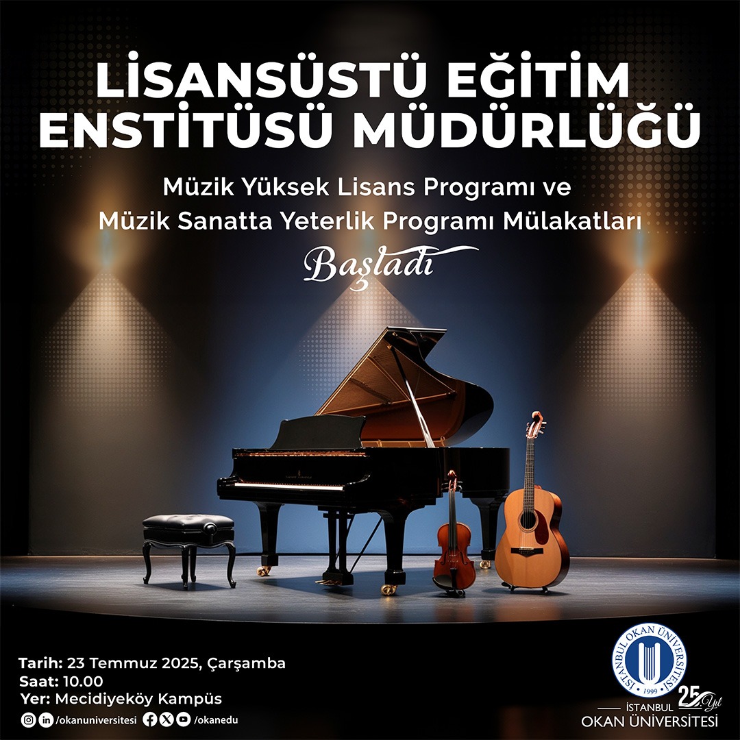 Adayların 23 Temmuz 2025 Çarşamba Günü Saat 10:00’da İstanbul Okan Üniversitesi Mecidiyeköy Kampüsü’nde hazır bulunmaları gerekmektedir.