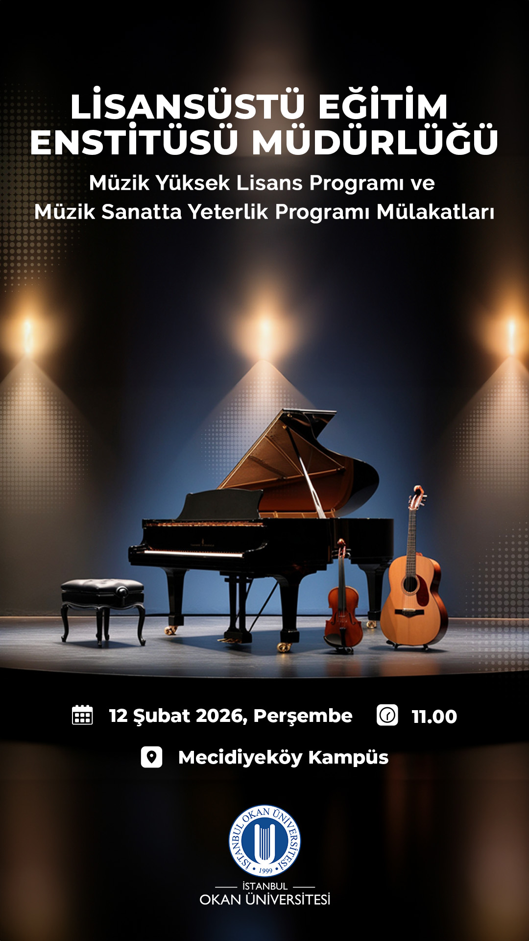 Adayların 12 Şubat 2026 Perşembe Günü Saat 11:00’de İstanbul Okan Üniversitesi Mecidiyeköy Kampüsü’nde hazır bulunmaları gerekmektedir.