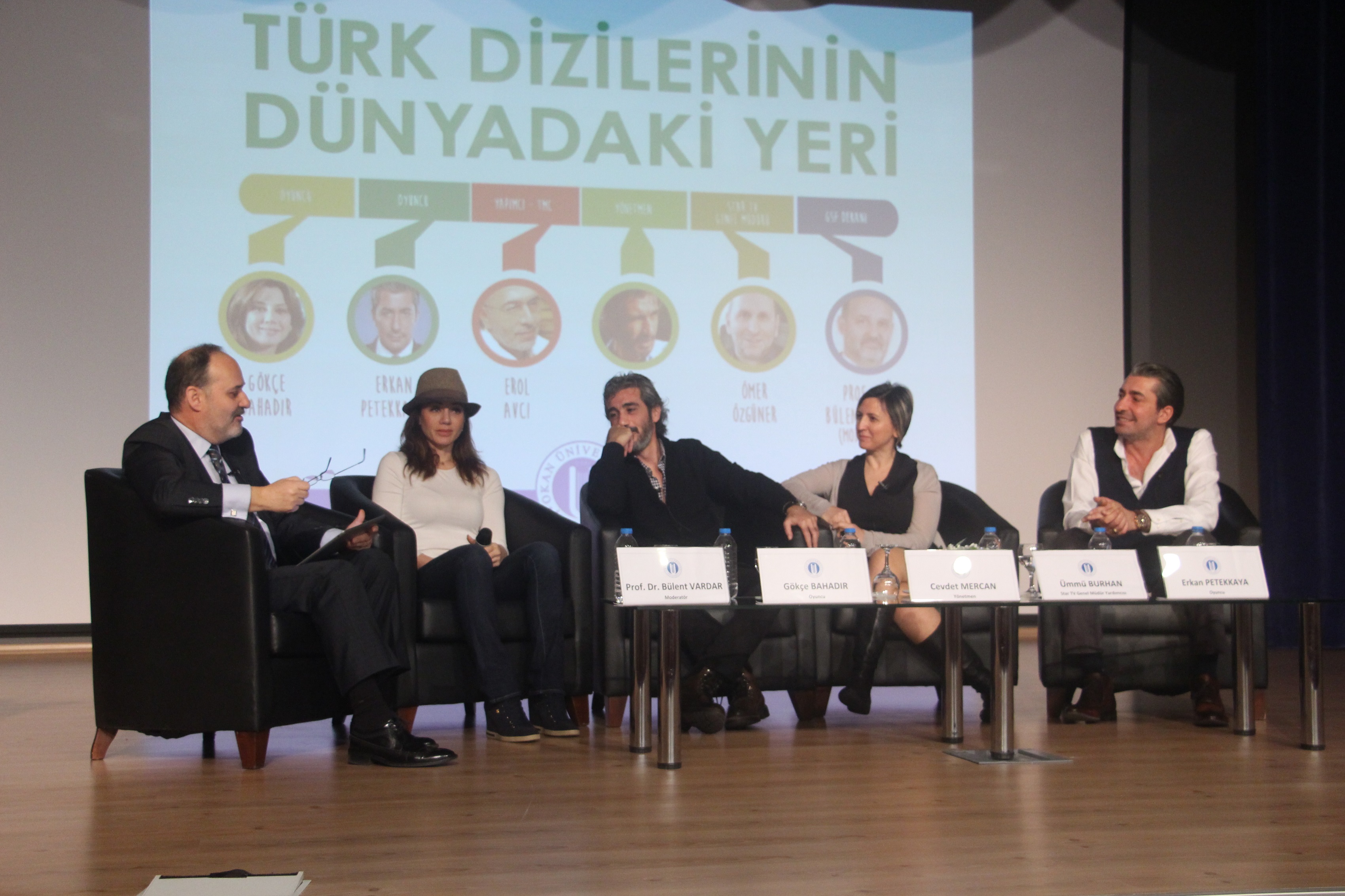 Güzel Sanatlar Fakültemizin düzenlediği “Türk Dizilerinin Dünyadaki Yeri” konulu söyleşide ünlü oyuncular Erkan Petekkaya ve Gökçe Bahadır, Star TV Genel Müdür Yardımcısı Ümmü Burhan ve yönetmen Cevdet Mercan Türk dizi sektörünü masaya yatırdı.