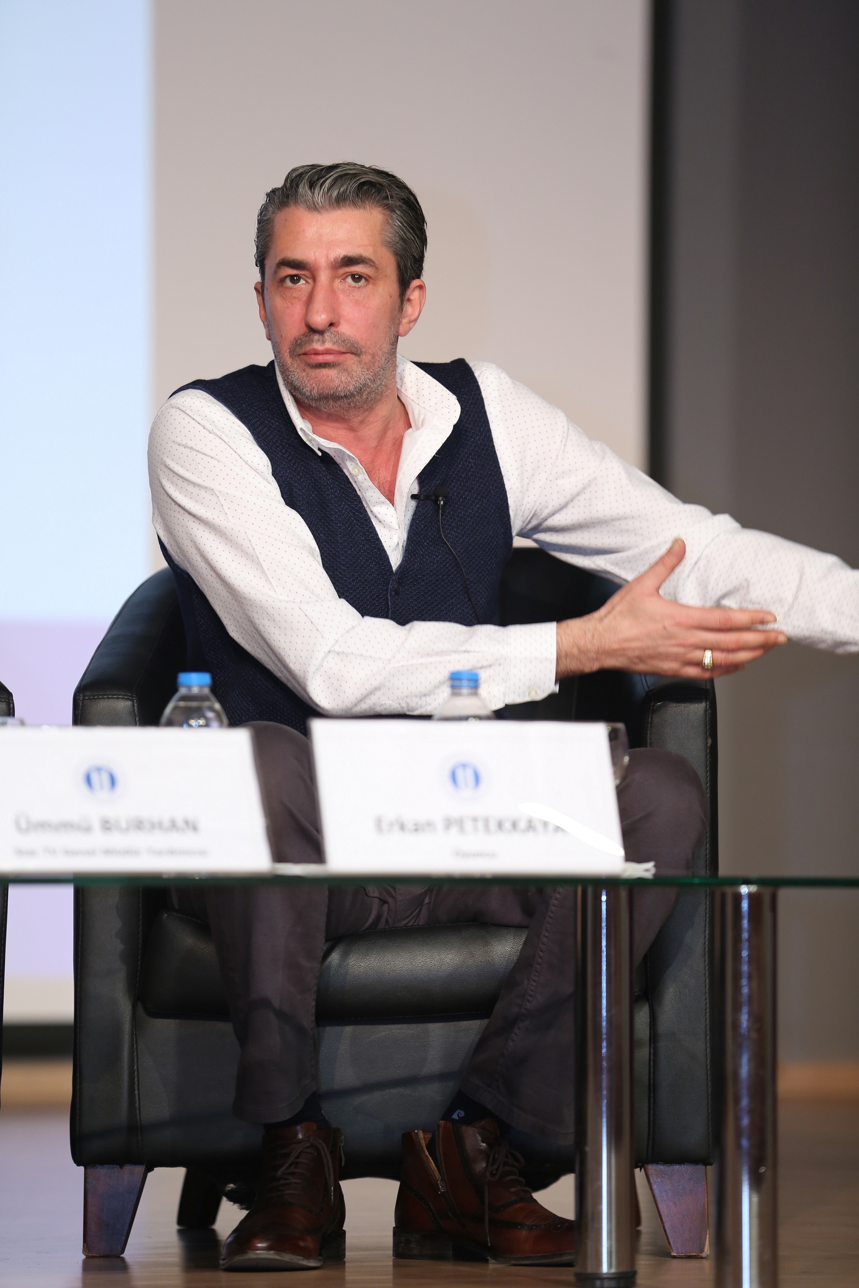 Moderatör Prof. Dr. Vardar’ın dizileri küçümseyerek, “Para kazanmak için dizi çekiyoruz” diyen oyuncular hakkında konuşmacıların ne düşündüklerini sorması üzerine Erkan Petakkaya “Onlar sahtekar” cevabını verdi.