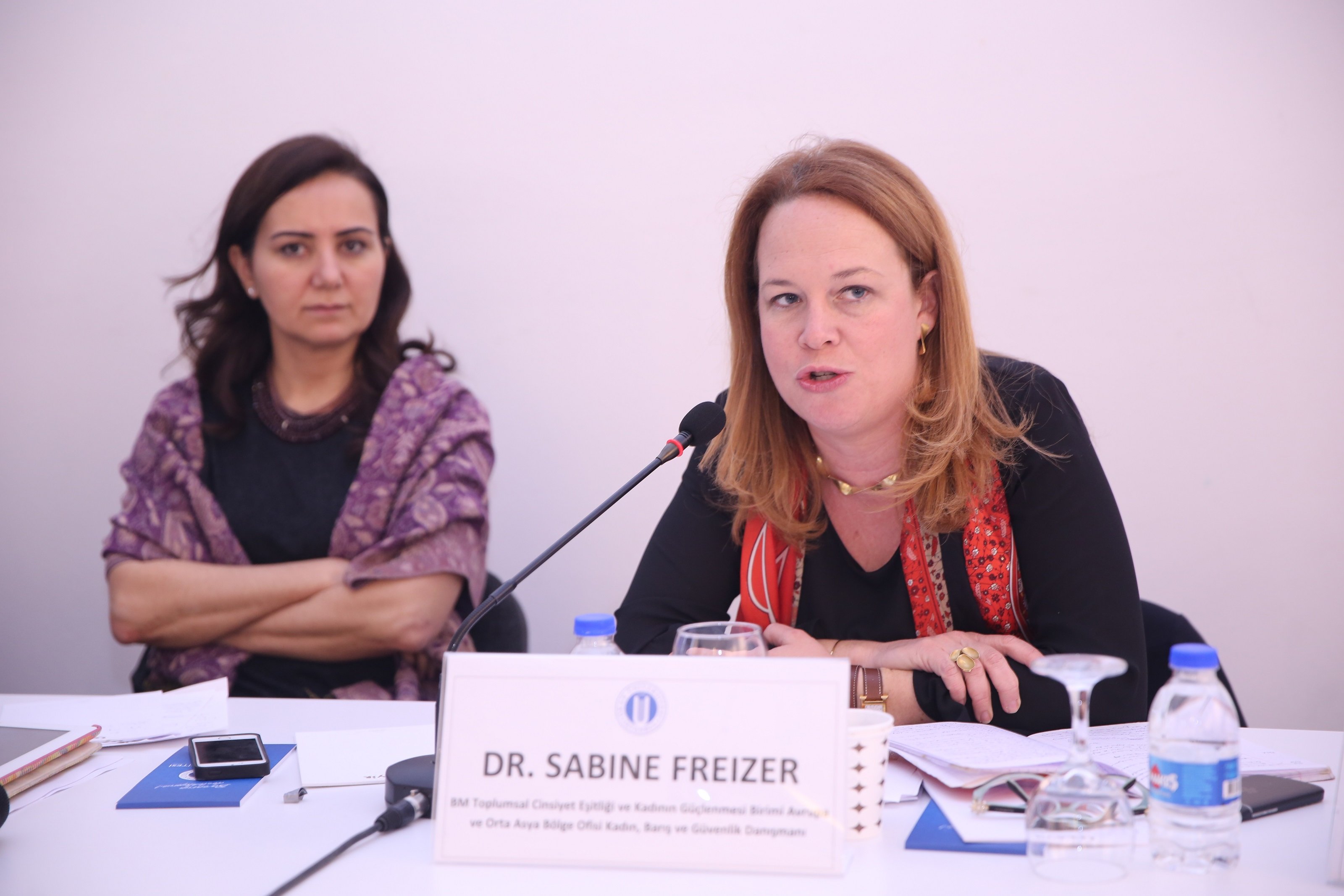 Panelistlerden Birleşmiş Milletler Toplumsal Cinsiyet Eşitliği ve Kadının Güçlenmesi Birimi Avrupa ve Orta Asya Bölge Ofisi Kadın, Barış ve Güvenlik Danışmanı Dr. Sabine Freizer konuşmasında geçtiğimiz yıl 1 milyon mültecinin Türkiye üzerinden transit geçiş yaptığını ve bunların 400 bininin hayatını kaybettiğini söyledi. 2016 Ocak-Şubat aylarında 122 bin mültecinin Yunanistan’a geçtiğini ifade eden, 410 kişinin ise kayıp ya da ölü olduğunu belirten Freizer “122 bin rakamı, geçtiğimiz yılın ilk altı ayında geçiş yapanların toplamından daha büyük bir rakam. Şubat 2016’da Türkiye’den Yunanistan’a geçen mültecilerin büyük çoğunluğunu kadınlar ve çocuklar oluşturuyor. Bu insanların yüzde 85’i dünyanın en fazla mülteci üreten ülkelerinden yani Irak, İran ve Afganistan’dan geliyordu” dedi.