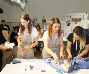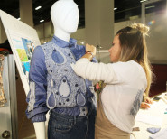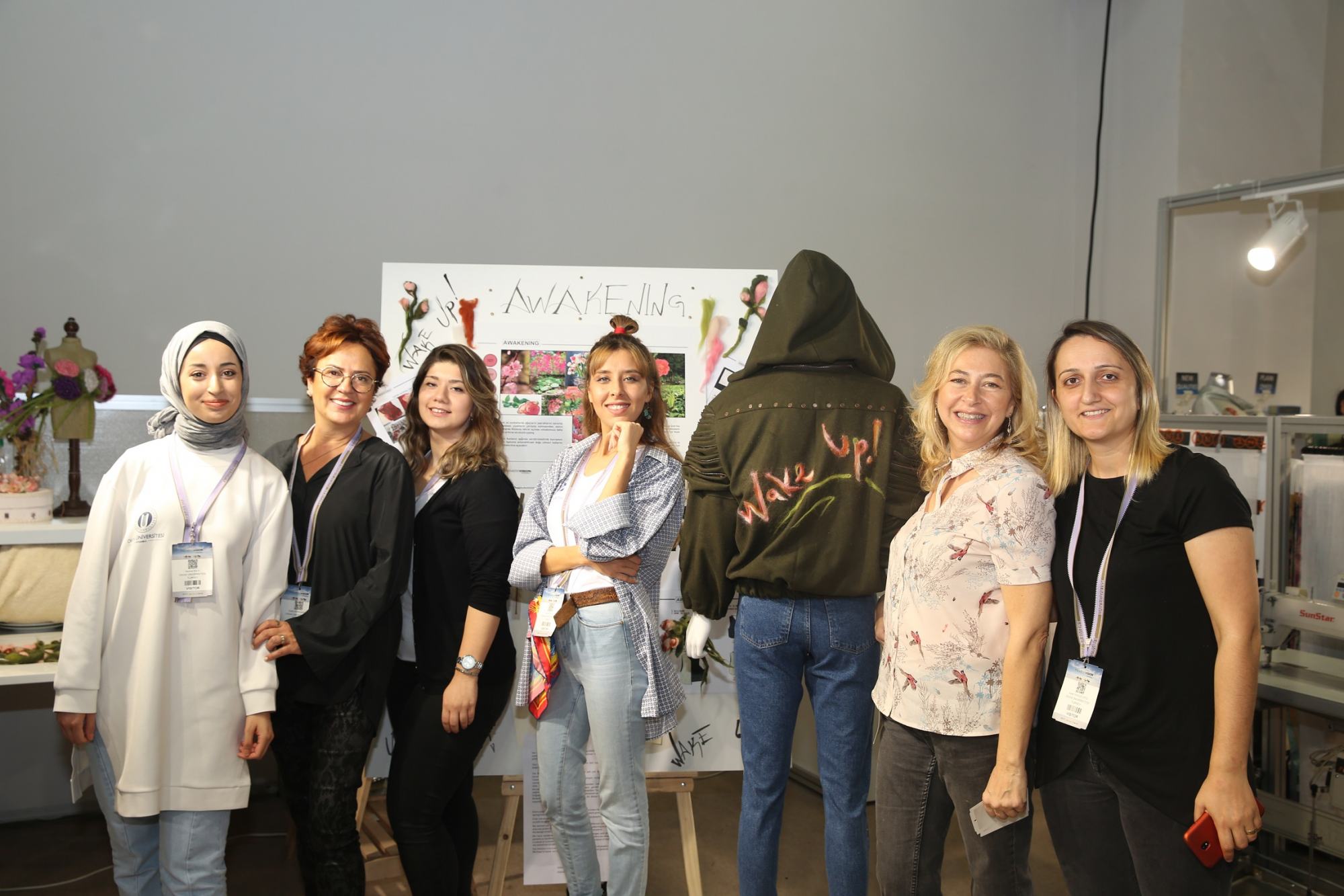 Öğrencilerimiz, atölye çalışması kapsamında projeye destek veren fuar katılımcılarının sağladığı kumaşları kullanarak sürdürebilirlik temasıyla bomber ceket tasarladı.