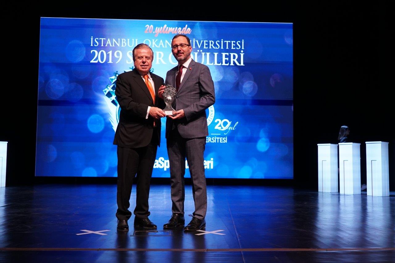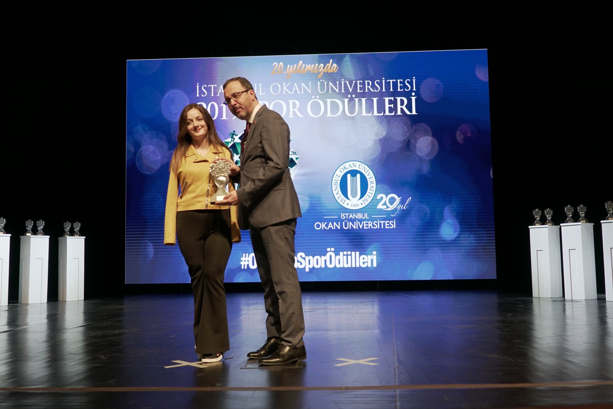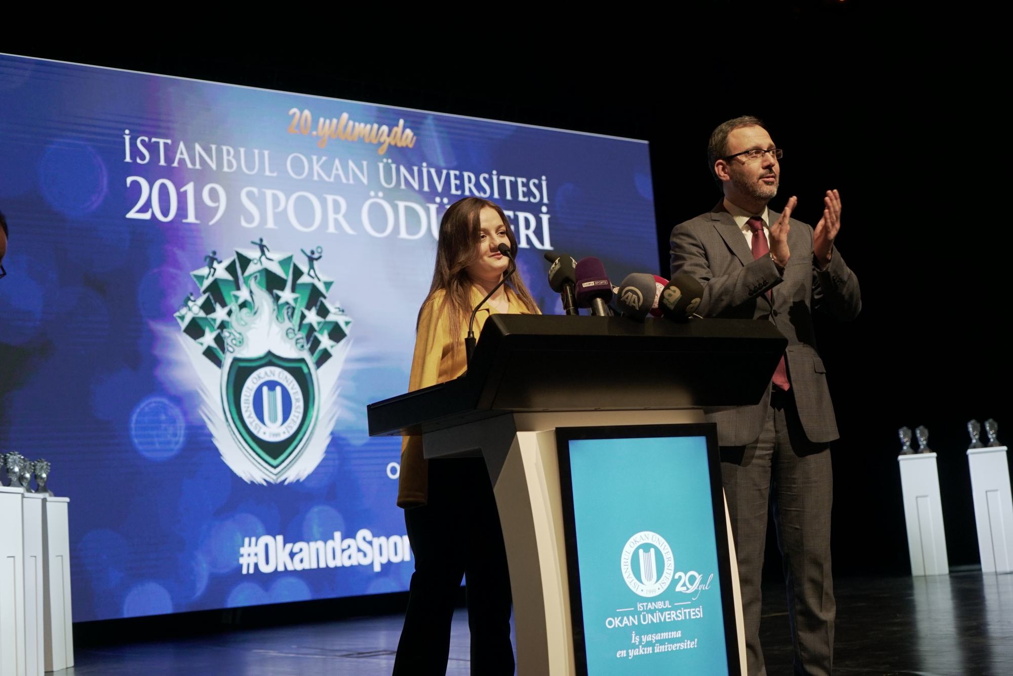 Bekir Okan Spor Özel Ödülü’nün sahibi olan T.C Gençlik ve Spor Bakanı Dr. Mehmet Muharrem Kasapoğlu “İstanbul Okan Üniversitesi’ne spora verdiği destekten ötürü canı gönülden teşekkür ediyorum. Verilen bu ödüller spora gösterilen değerin hassasiyetin, gayretin ürünü” dedi. Bakan ayrıca 8 Mart Kadınlar Günü’ne de değindi. “Kadınlar Günü yaklaşmışken belirtmek isterim ki, kadınlarımız sporun öncüsü. Kadın odaklı spor politikamızla daha nice güzel işbirlikleri yapacağız.” T.C Gençlik ve Spor Bakanı Dr. Kasapoğlu ayrıca sporcu bursu protokolüne katılan üniversite sayısının artırıldığı müjdesini de verdi: “İstanbul Okan Üniversitesi’nin de desteklediği sporcu bursu çalışmamızla spor mu eğitim mi ikilemini ortadan kaldıracağız. İlk protokole 28 üniversite katılmıştı. Yeni protokolle 50 üniversitenin üzerine çıkacağız.”