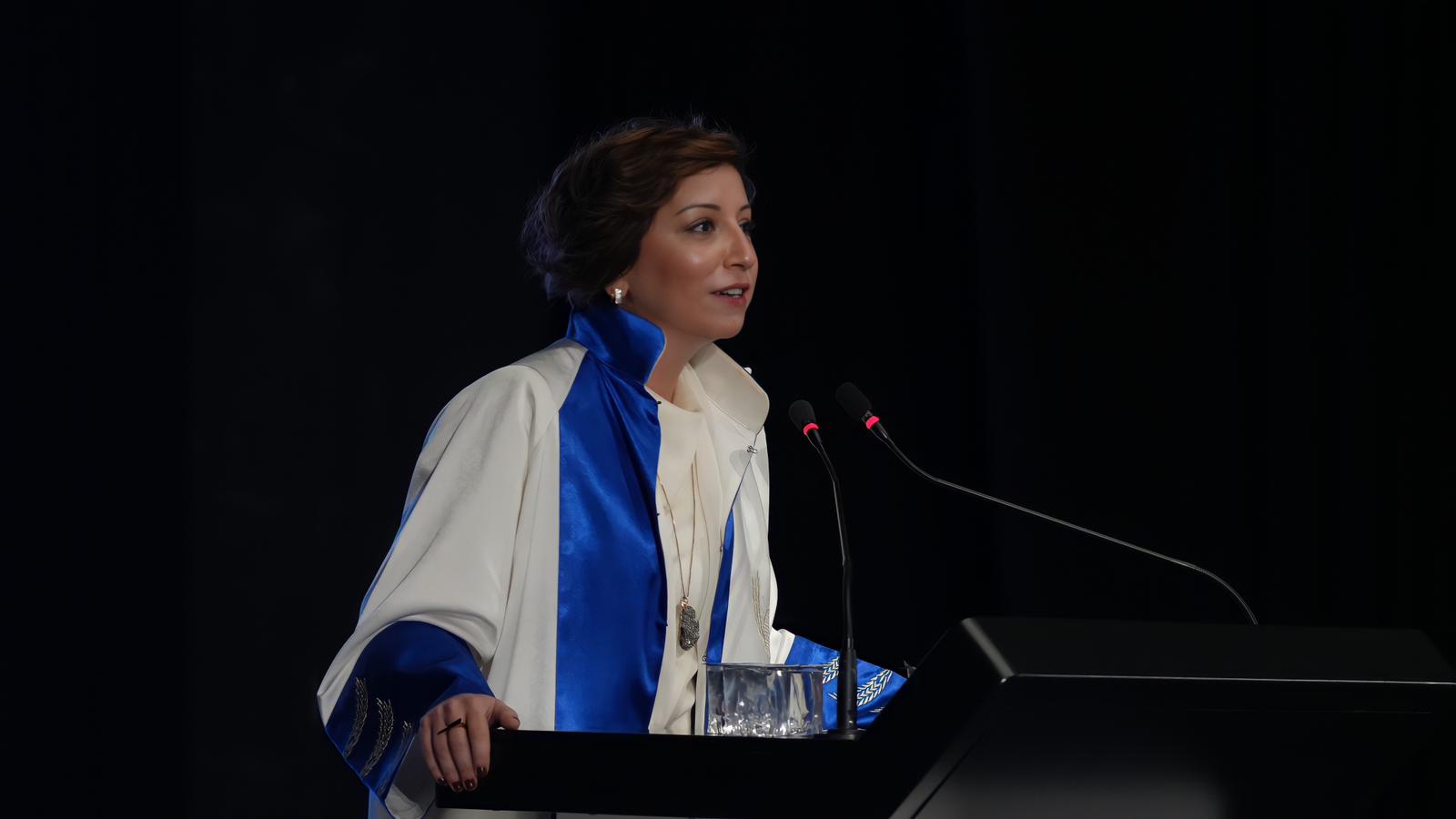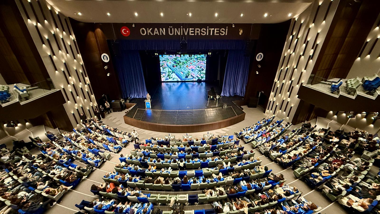 Rektörümüz Prof. Dr. Güliz Muğan konuşmasında, “Üniversitemiz, bu yıl ulusal düzeyde YÖK’ün tam akreditasyonuna ve uluslararası düzeyde de farklı alanlarda dünya sıralamalarında üst derecelerde yer almanın gururunu taşıyor. Bu başarı, sizlere sunduğumuz eğitim kalitesinin ve küresel düzeyde rekabetçi bir mezuniyet imkânının göstergesidir. Sizler de bunun haklı gururuyla bu yola başlayın. Dünya artık sınırların kalktığı bir yer. İstanbul Okan Üniversitesi, sizleri bu vizyonla donatıyor. Uluslararasılaşma fırsatlarımız bu vizyonun en önemli parçalarından biri. Bunun farkındalığıyla Erasmus, ISEP gibi değişim programlarının ve farklı üniversitelerdeki çift diploma programlarının bir parçası olmaya çalışın; İngilizce’nin yanı sıra Çince, Rusça, Almanca gibi sizi sadece yerel değil, küresel iş dünyasında da farklı kılacak ikinci bir dille tanışın.” sözlerine yer verdi.