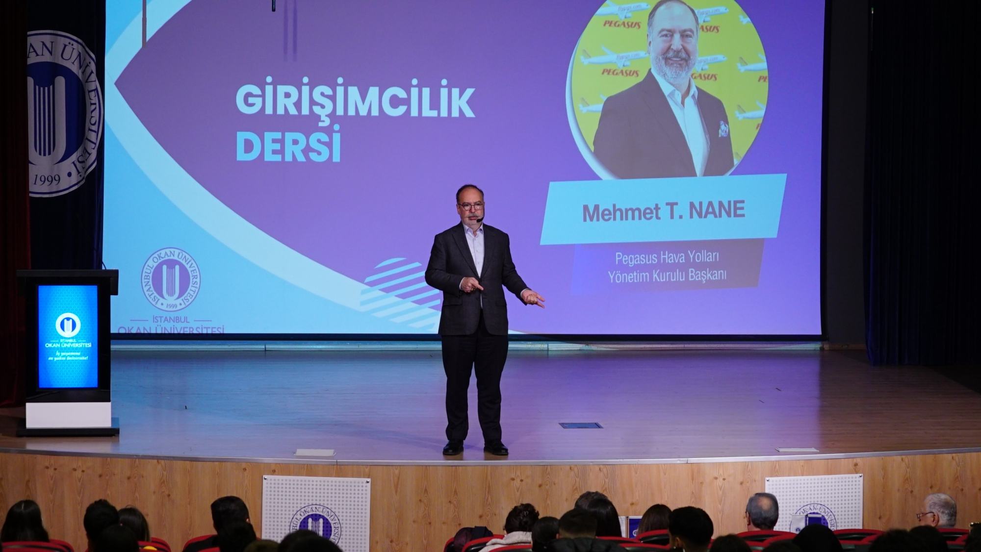 Üniversitemizin Türkiye'de ilk kez başlattığı Girişimcilik Dersi'ne Pegaus Hava Yolları Yönetim Kurulu Başkanı Mehmet Nane konuk oldu. Nane, konuşmasına hayattaki keşkesi ile başladı: "Keşke üniversiteden mezun olduktan sonra, profesyonel iş hayatında çok ilerlemeden kendi işimi kurmayı, kendi girişimciliğimi yapmayı deneseydim". Mehmet Nane, “Fikriniz varsa, değer üretebileceğiniz bir alan varsa, eğer enerjiniz de varsa, riski de kontrol edebilecekseniz, kendi işinizi deneyin” sözleriyle öğrencilerimize konuşmasında ilk tavsiyesini verdi. Nane bu süreçte gençlere zorlanabileceklerini, belki kiralarını bile ödemeyeceklerini söylerken, “Başarılı olursanız sizi iyi bir gelecek bekler. Başarısız olsanız dahi yolun başındayken profesyonel iş hayatına dönersiniz. Ama profesyonellikte belli bir aşamaya gelip, belli bir rahatlığa eriştikten sonra girişimciliğe dönemezsiniz. Ben de, bunu yaşadım” dedi.