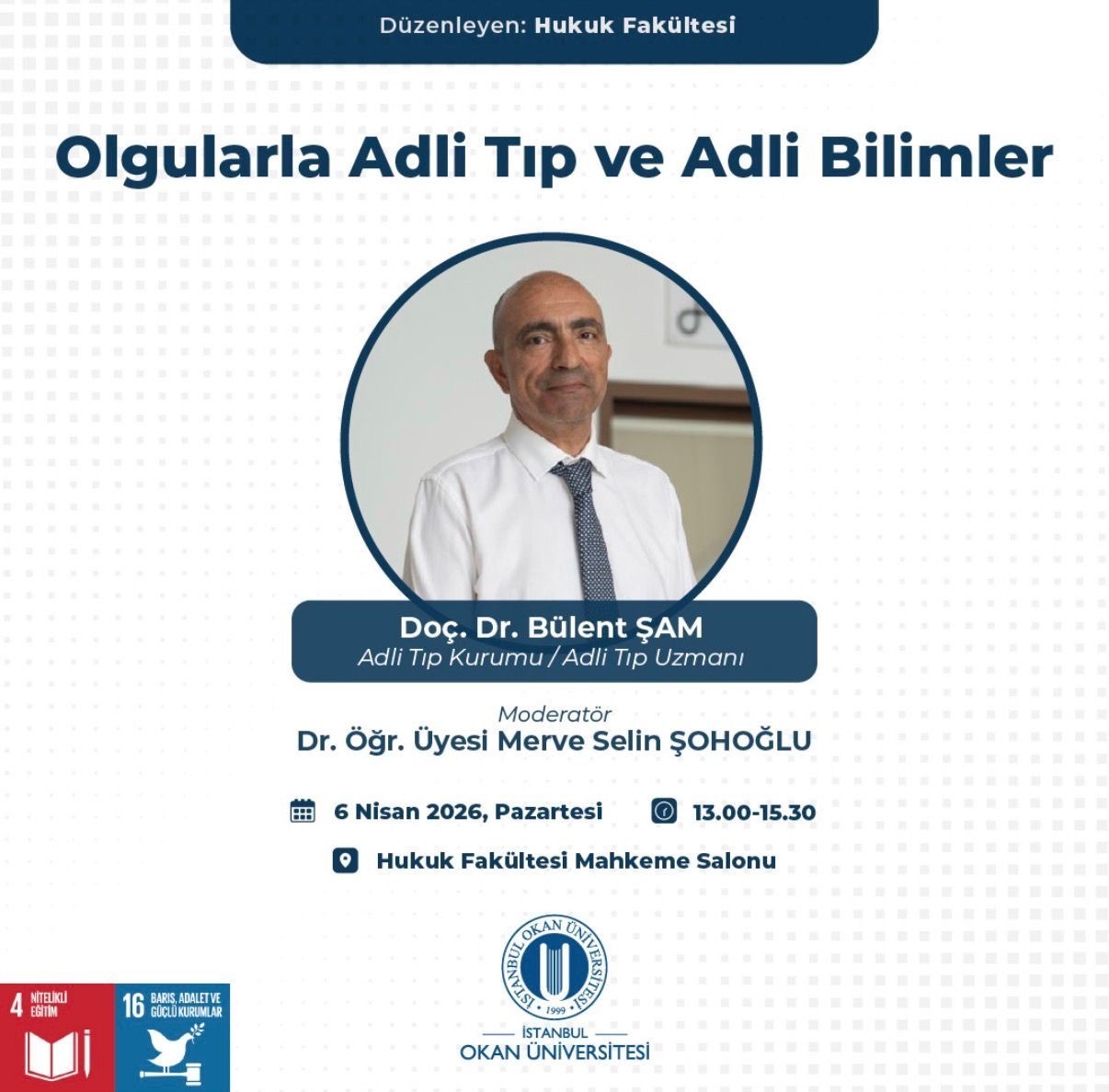 Hukuk Fakültemizin düzenlediği “Olgularla Adli Tıp ve Adli Bilimler” etkinliğinde, gerçek vakalar üzerinden adli süreçleri ve bilimsel değerlendirmeyi birlikte ele alıyoruz.
