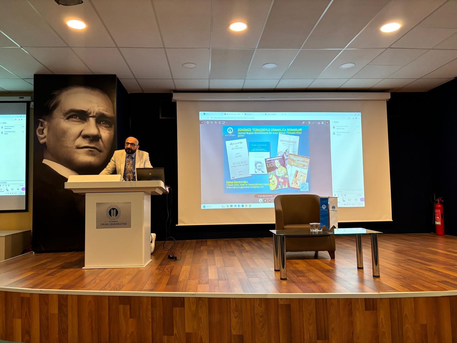 Bu etkinlikte Prof. Dr. Cemal Demircioğlu, Osmanlıca romanların günümüz Türkçesine aktarım sürecini “diliçi çeviri” bağlamında ele aldı. Konuşmada, geçmişte yazılmış edebi metinlerin çağdaş okuyuculara nasıl ulaştırılabileceği; bu süreçte karşılaşılan dilsel, tarihsel ve kültürel meseleler üzerinde duruldu.