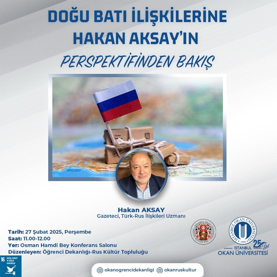 Etkinlik, Rusya ve Türk - Rus ilişikileri konusuna uzun yıllarını vermiş, gazeteci-yazar Hakan Aksay’ın katılımıyla düzenlendi. Leningrad Devlet Üniversitesi Gazetecilik Fakültesi'ni bitiren Hakan Aksay Brejnev, Andropov, Çernenko ve Gorbaçov iktidarları döneminde ve ayrıca 20 yıl boyunca Yeltsin ve Putin dönemlerinde çeşitli gazete ve TV'lerde muhabirlik ve köşe yazarlığı yapmış olmanın getirdiği birikimi ve bu perspektiften Rusya’da eğitim hayatını, kendi tecrübelerini öğrencilere aktardığı bir konuşma ile açılışı yaptı.