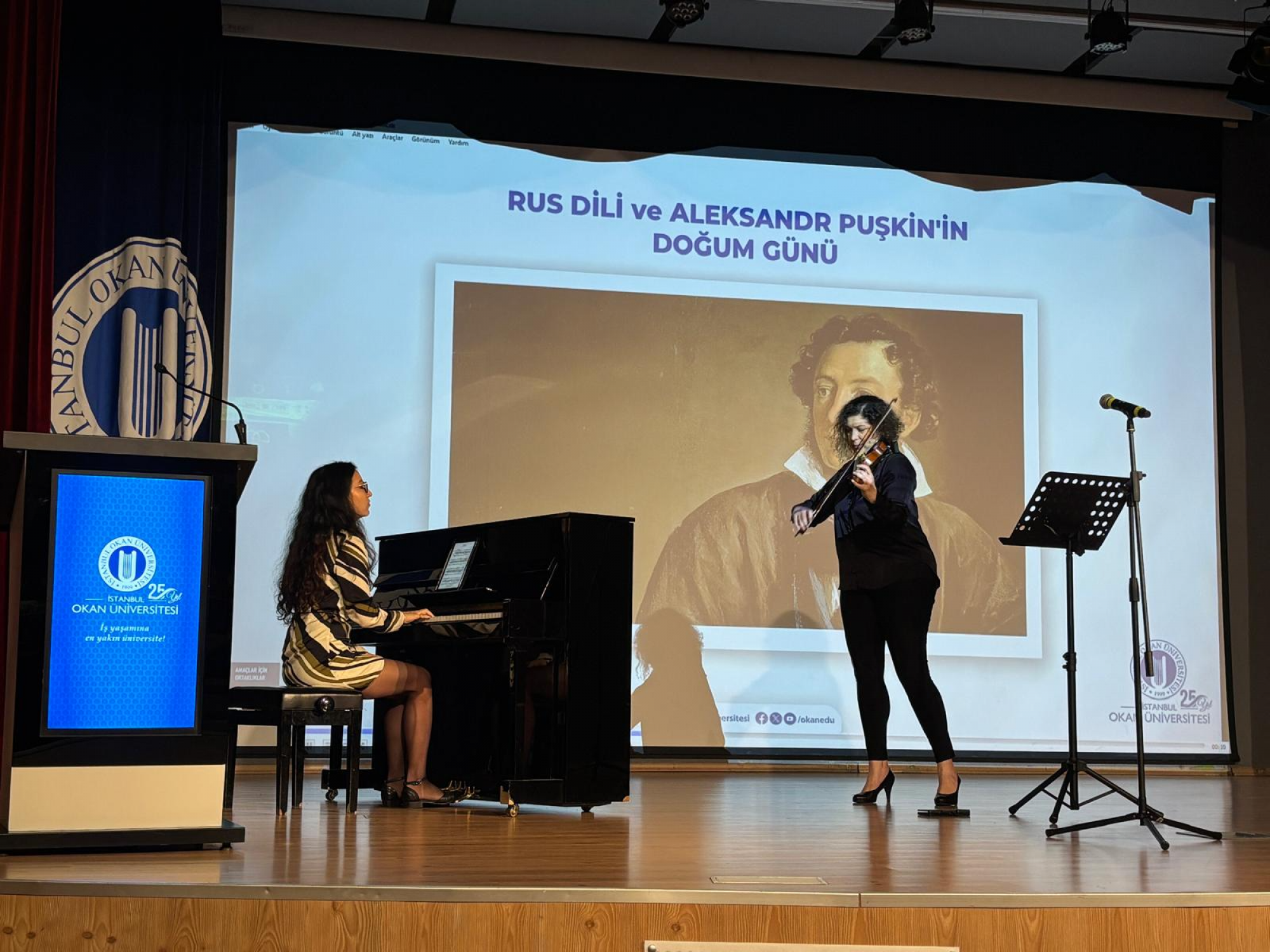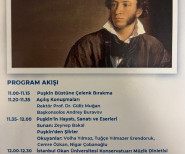 Rektörümüz ve Türkçeyi büyük bir ustalıkla kullanan Rusya Federasyonu Başkonsolosu’nun gerçekleştirdiği açılış konuşmalarının ardından büyük şairin hayatı ve eserlerinden örnekler, üniversitemiz Rusça Mütercim Tercümanlık Anabilim Dalı hocaları tarafından seslendirilmiş, konservatuar bölümümüz programa günün anlam ve önemini vurgulayan klasik eserleriyle renk katmıştır.