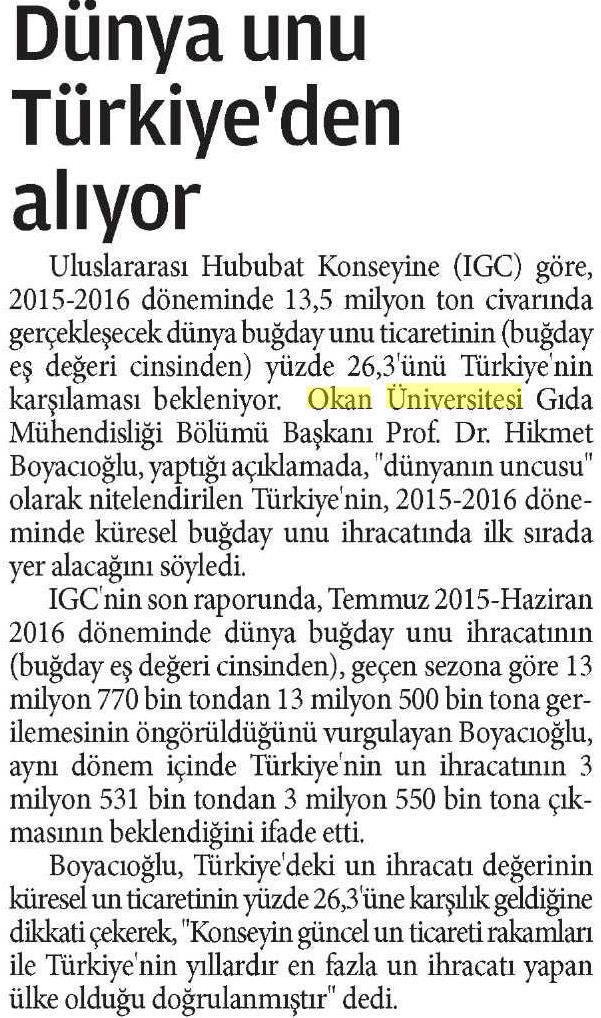 Yeni Söz – “Dünya Unu Türkiye’den Alıyor”