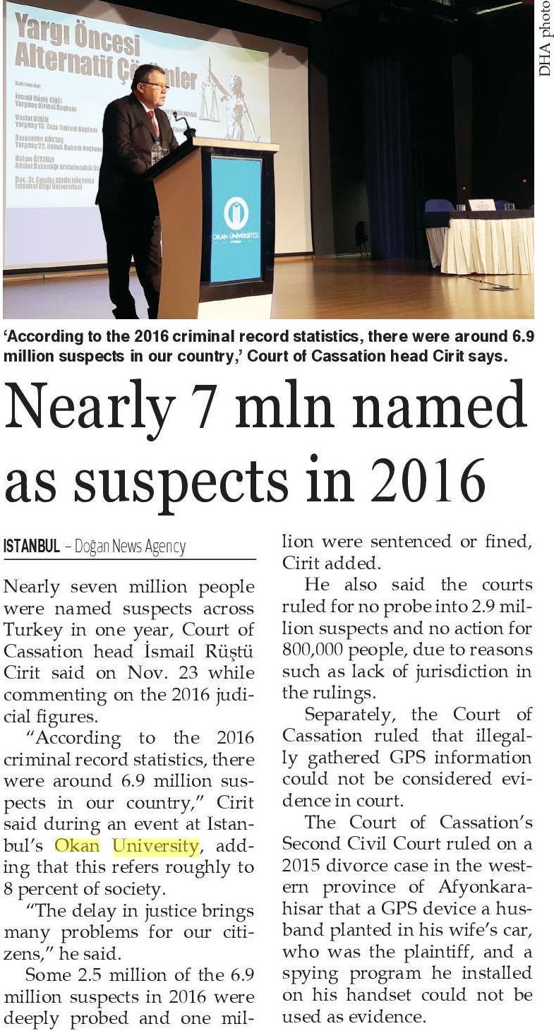 Hürriyet Daily News - “Nearly 7 Mln Named As Suspects In 2016”