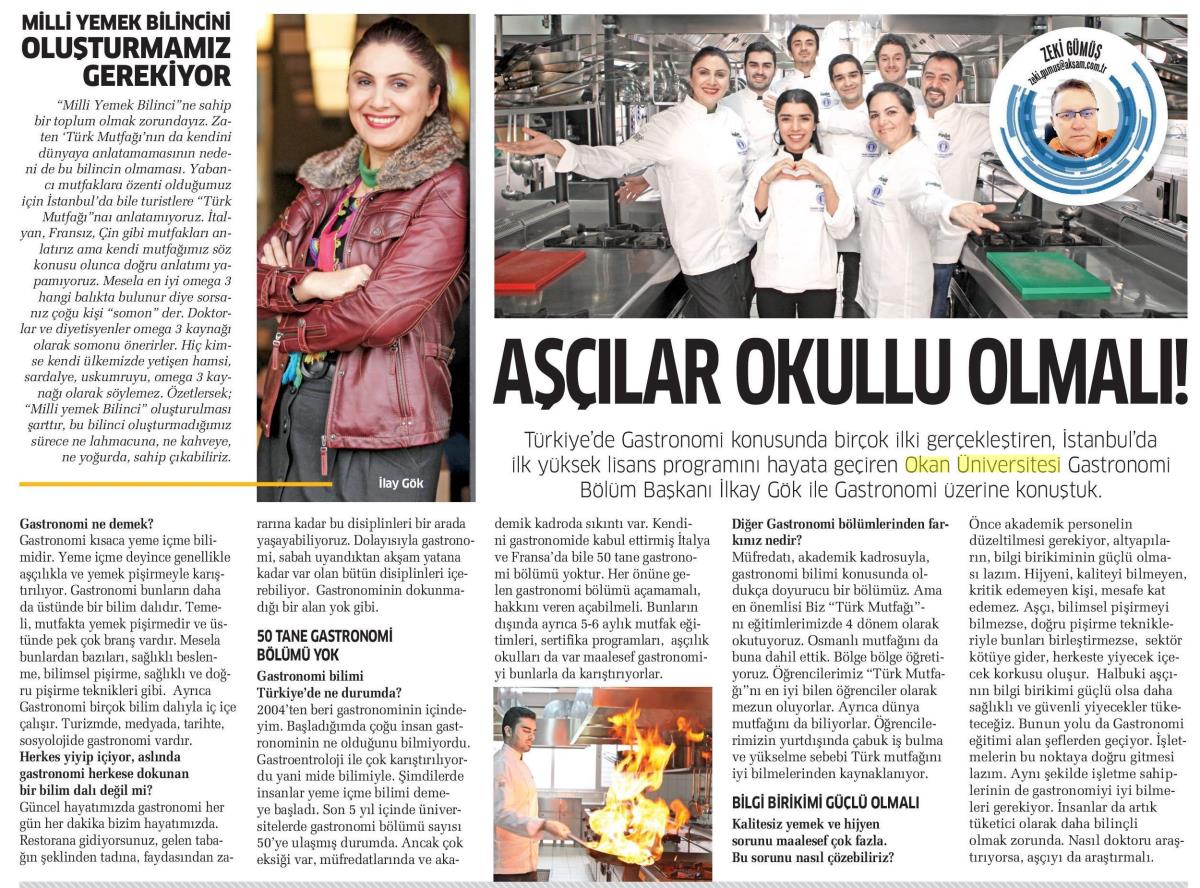 Akşam – “Aşçılar Okulu Olmalı”