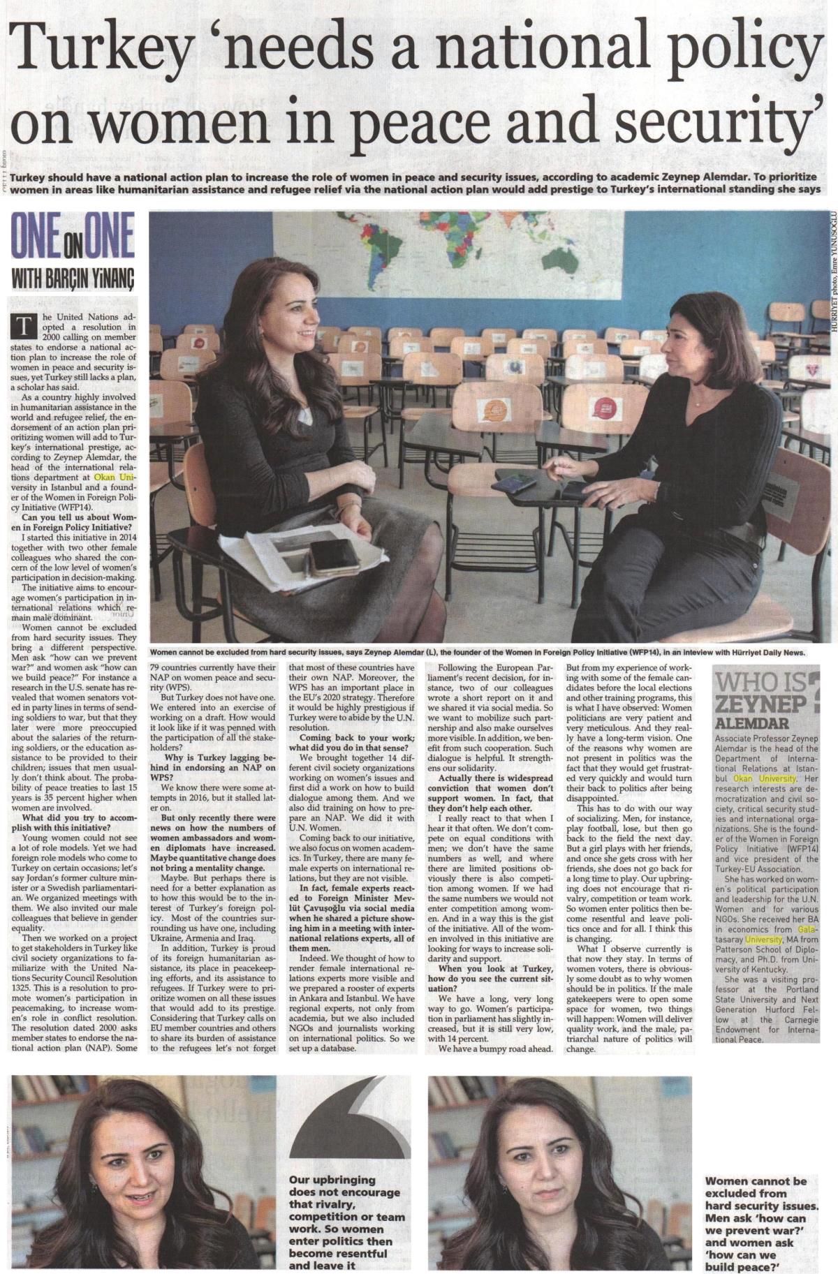 Hürriyet Daily News – “Turkey Needs A National Policy On Women In Peace And Security”