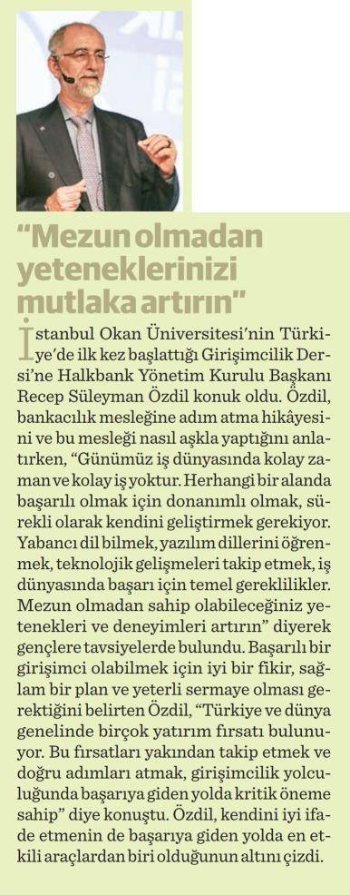 Dünya – “Mezun Olmadan Yeteneklerinizi Mutlaka Artırın”