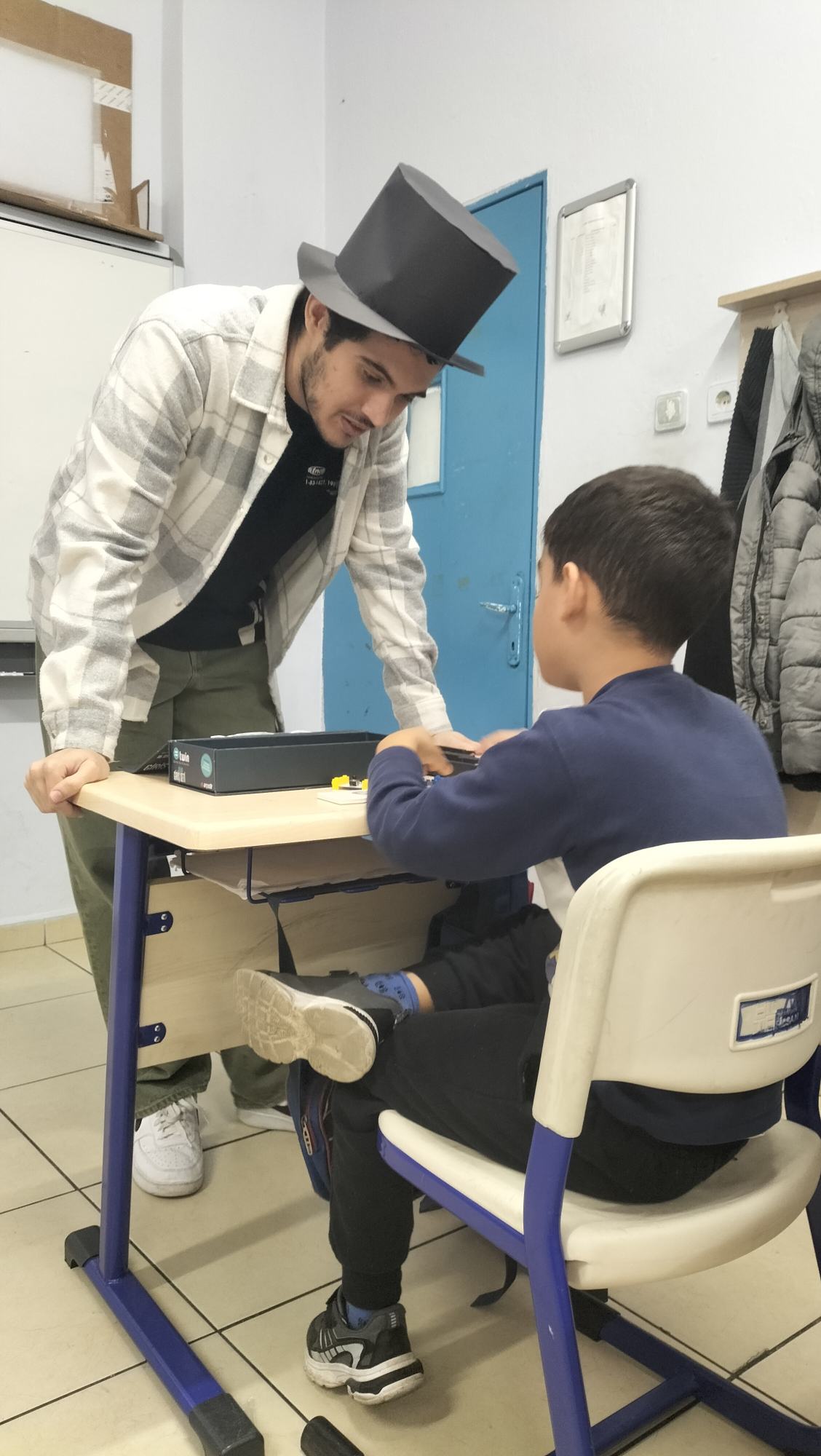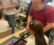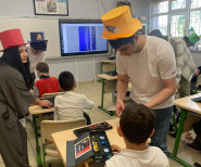 Bu interaktif giriş dersinin ardından sahneyi "Toplumsal Fayda için Programlama" dersini alan üniversite öğrencilerimiz devraldı. Öğrencilerimiz, ilkokul öğrencisi kardeşlerine ilk deneyleri olan korna yapımını uygulamalı olarak gösterdi.