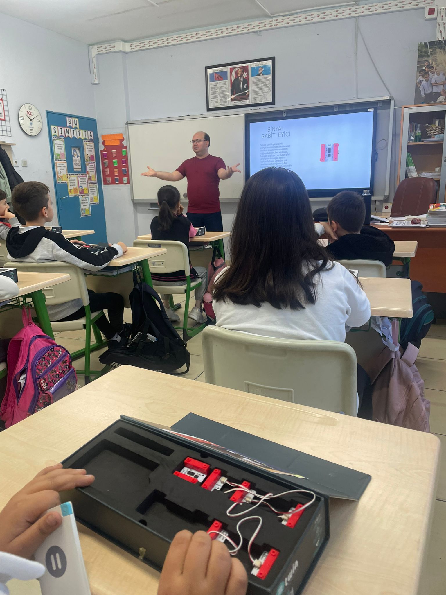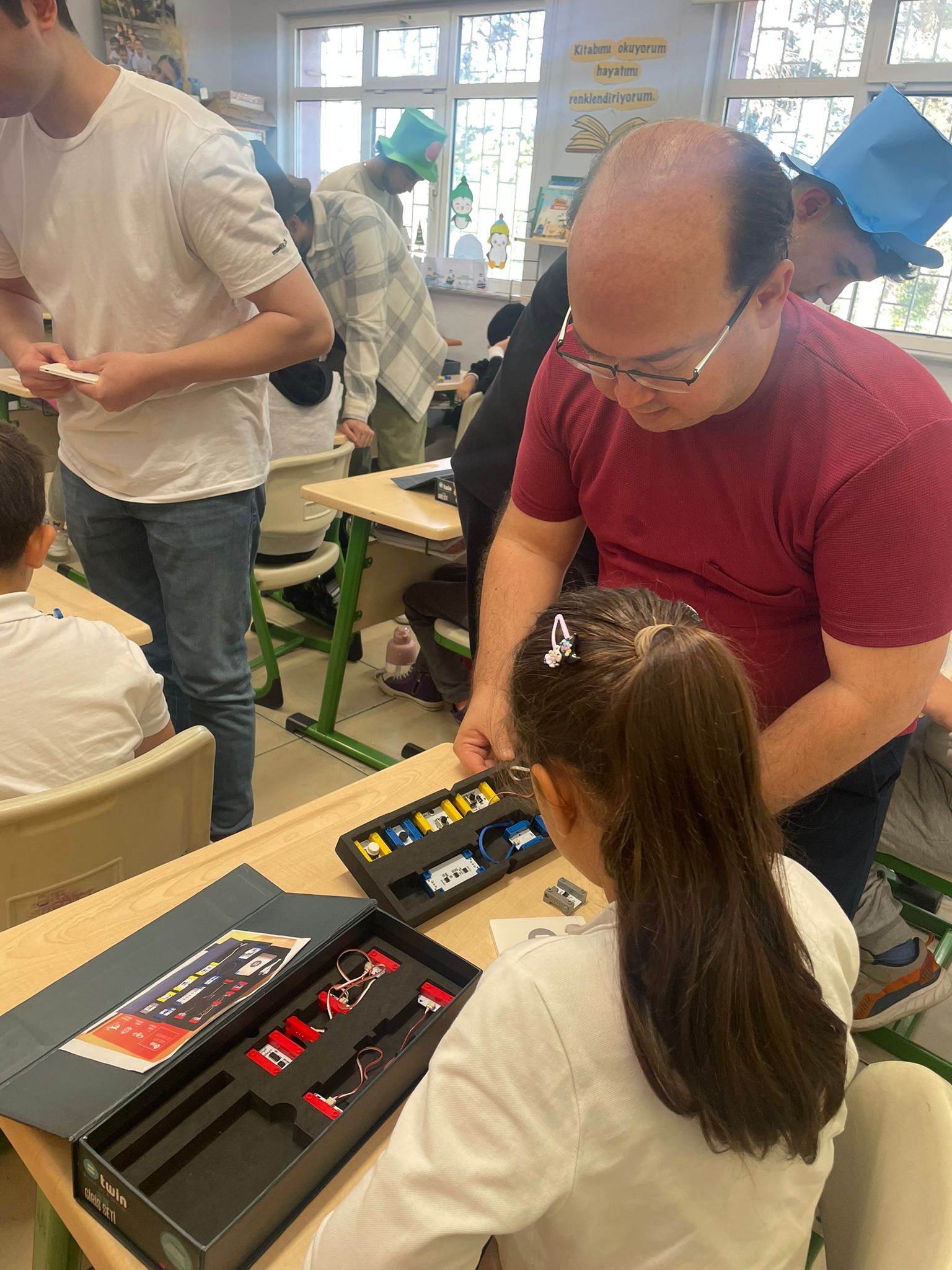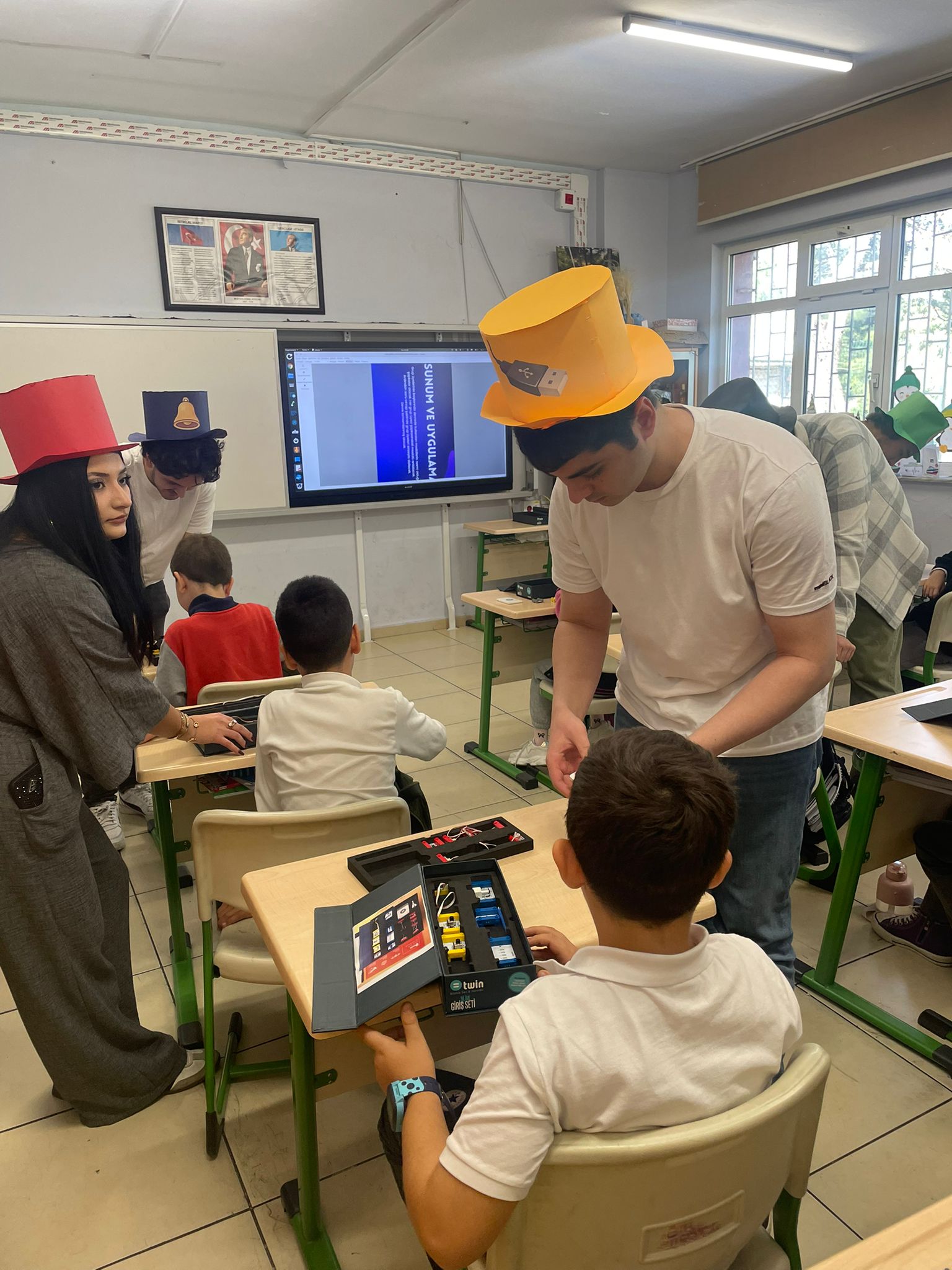 Etkinliğin açılış dersini veren Öğretim Görevlimiz Alper Çeltikçi, minik öğrencilere "twin eğitim seti" materyallerini tanıtarak teknolojiyle dolu bir dünyanın kapılarını araladı. Ardından basit elektrik devresinin ne olduğunu ve nasıl çalıştığını anlatarak, öğrencilerin meraklı sorularını yanıtladı.