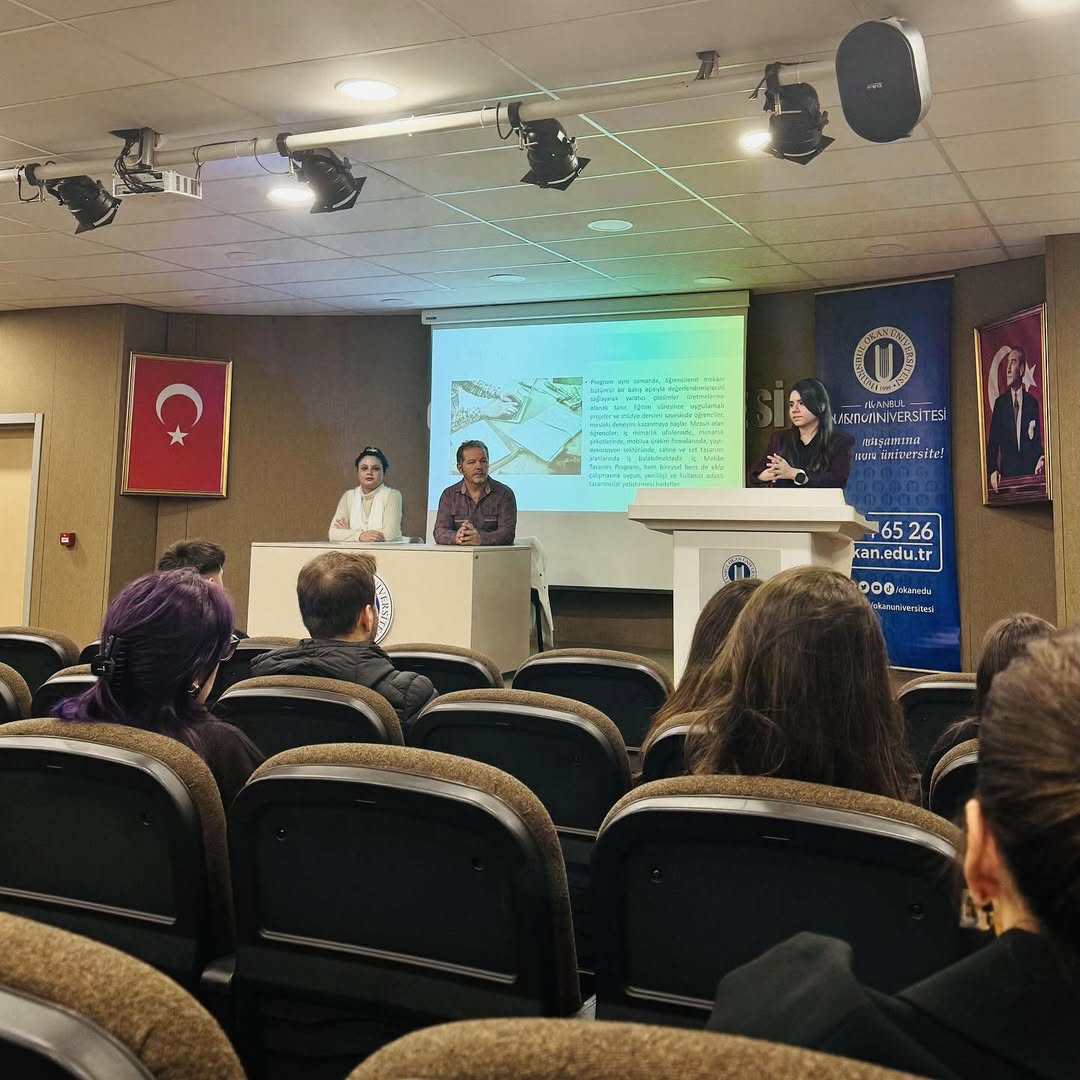 Üniversitemiz Tasarım Bölümü Oryantasyon Programı kapsamında, Grafik Tasarımı ve İç Mekan Tasarımı Programı öğrencileri bir araya geldi. Etkinlik Bölüm Başkanımı Öğretim Görevlisi İsmail Doğan’ın yanı sıra Öğretim Görevlimiz Berra Seda Sarıhan Kara, Öğretim Görevlimiz Didem İçen ve Öğretim Görevlimiz Gülgün İbrahimoğlu’nun katılımıyla gerçekleşti. Akademisyenler, bölümlerin eğitim içerikleri, staj süreçleri, atölye çalışmaları ve kariyer olanakları hakkında bilgilendirme yaptı. Etkinlik soru-cevap bölümüyle sona erdi.