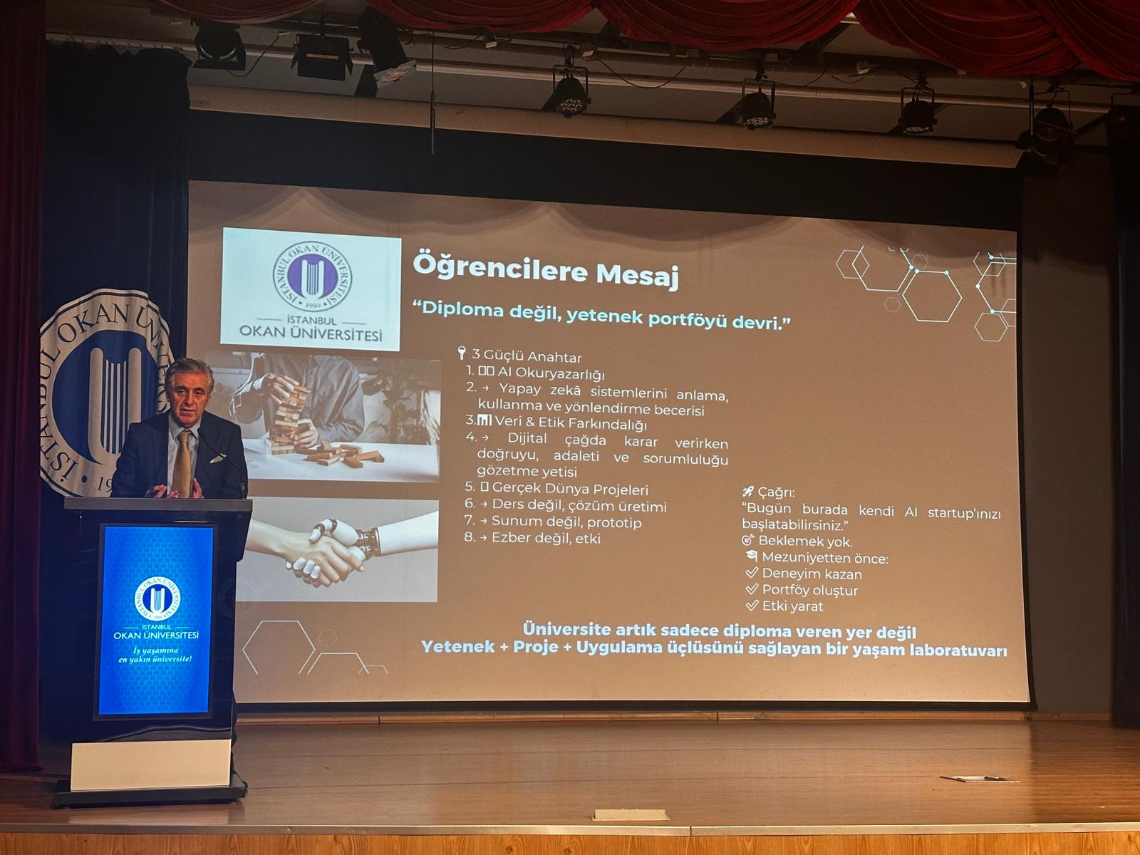 Etkinlik kapsamında öğrencilerimiz, yapay zekânın yükseköğretimdeki kullanım alanları, veri odaklı öğrenme yaklaşımları, etik ve sürdürülebilir dijital dönüşüm gibi güncel konularda bilgi edinme fırsatı buldu. Bu deneyim, öğrencilerimizin hem teknik hem de mesleki vizyonlarını genişleterek, sektördeki yenilikleri yakından takip etmelerine katkı sağladı.
