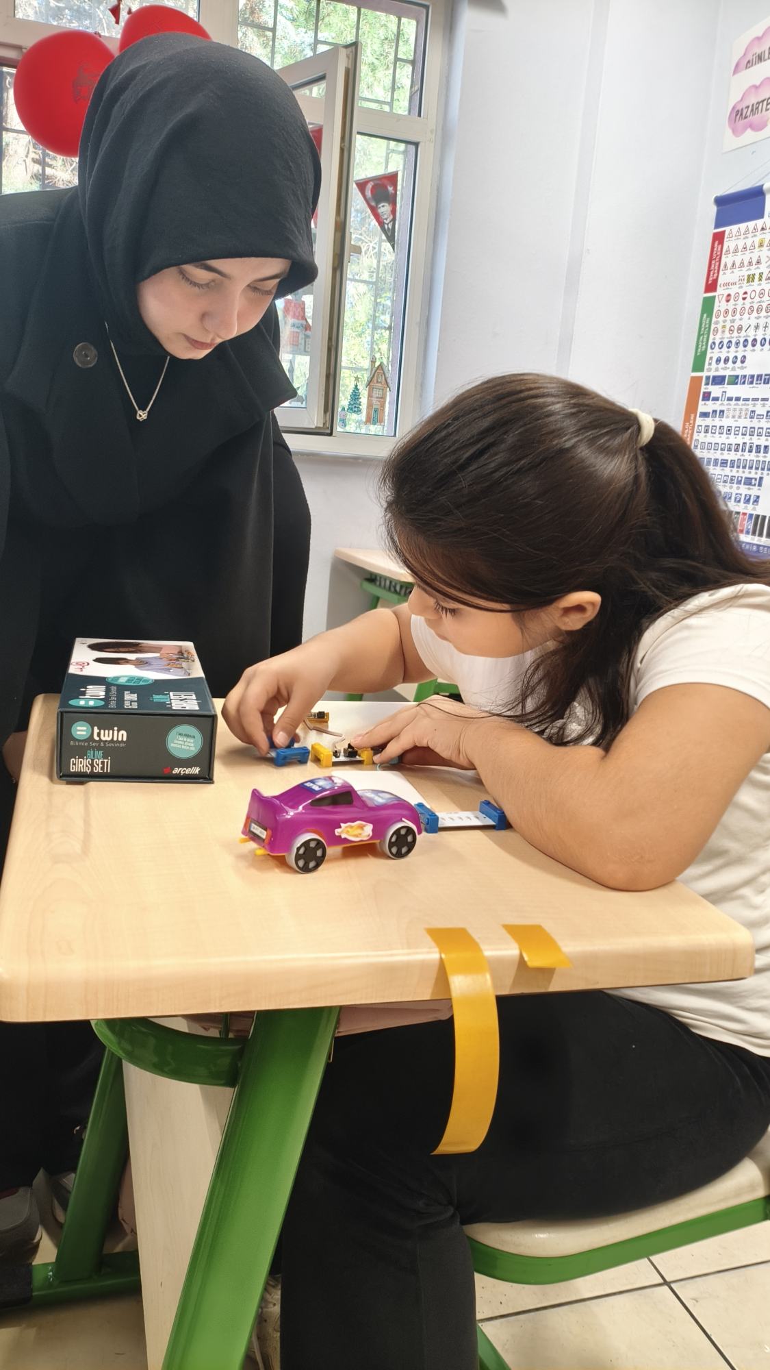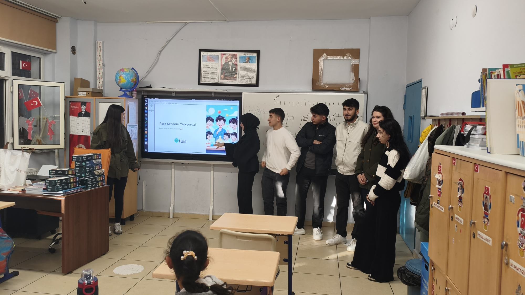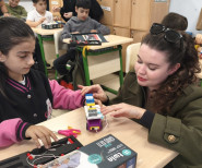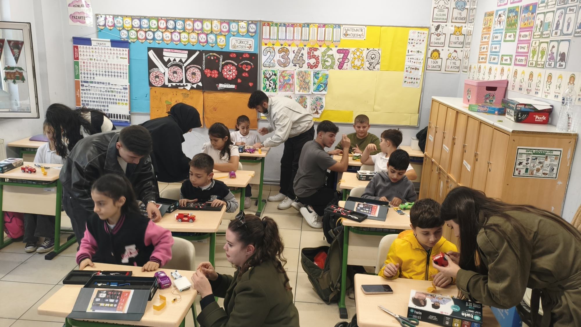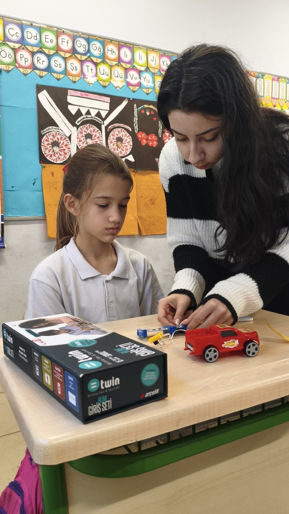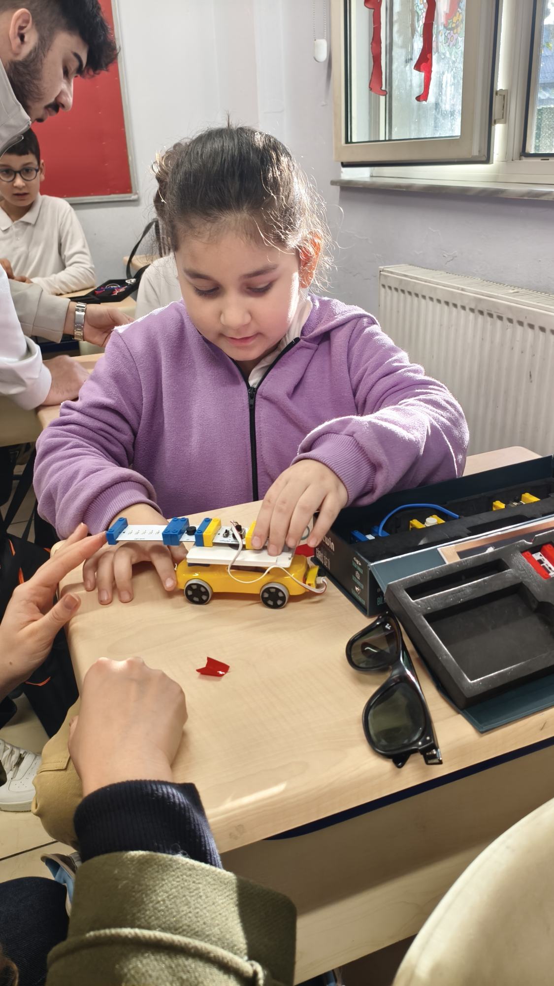 Atölye çalışmasında öğrenciler, yeni tanıştıkları mesafe algılayıcı modülünü kullanarak, cisimlere yaklaştıkça uyarı veren akıllı sistemler kurdu. Öğrencilerimizin mentörlüğünde devrelerini tamamlayan minik mühendisler, onlara hediye edilen araçların üzerine hazırladıkları devreleri yapıştırarak sistemlerini tamamlamış oldular. Minik mühendisler, park sensörü entegre edilmiş olan araçlarını geri geri park etmeye çalıştıklarında kurdukları sistemin tepkilerini heyecanla test ettiler.