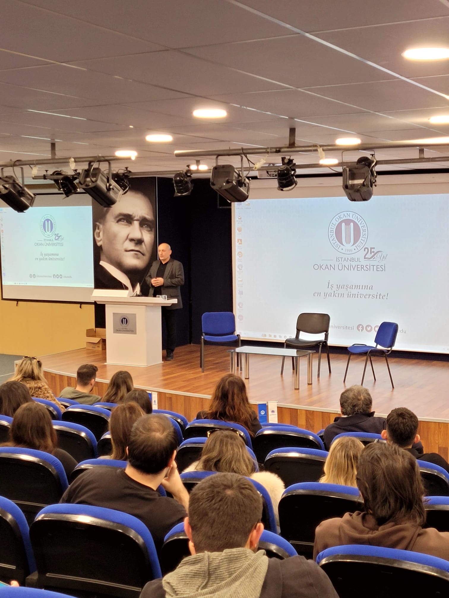 Mezunlarımızdan Aslı Akpınarlı, İstanbul Barosu’ndaki kariyer deneyimlerini paylaşırken; Ali Rıza Uz, üniversite mezuniyetinin ardından kurduğu Uz Makine Teknik ile girişimcilik yolculuğunu öğrencilerimizle paylaştı.