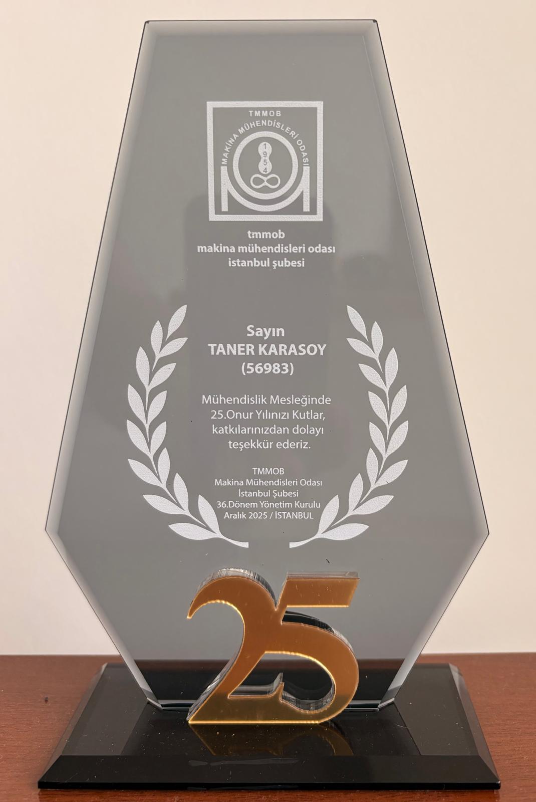 Meslek Yüksekokulumuz Makine ve Metal Teknolojileri Bölümü Başkanımız Dr. Öğretim Üyesi Taner Karasoy, TMMOB Makine Mühendisleri Odası’nın düzenlemiş olduğu “Meslekte Onur Yılı” etkinliğinde Makine Mühendisleri Odası Bölge Temsilcisinin elinden Makine Mühendisliğinde 25. Yılının Onuruna Plaket verilmiştir. Bölüm Başkanımızı makine mühendisliği mesleğinde 25. onur yılını kutlar akademik ve mühendislik hayatında başarılarla dolu nice onur yılları dileriz.