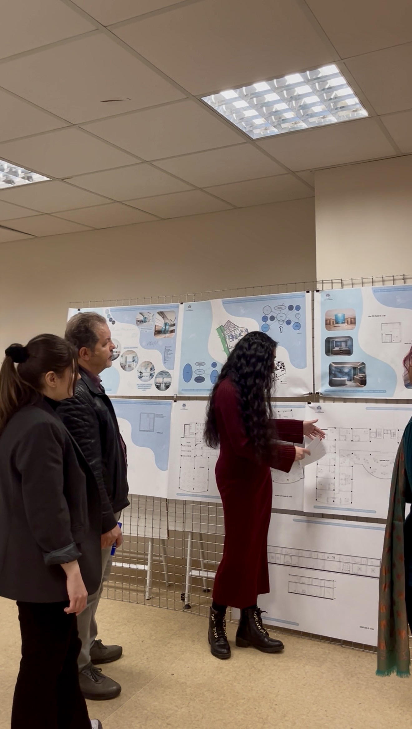 Jüri karşısında projelerini sunan öğrencilerimizin, iş yaşamında karşılaşabilecekleri eleştiri, geri bildirim ve farklı bakış açılarına hazırlıklı olmaları hedeflendi. Bu süreçte öğrencilerin yalnızca tasarımlarını anlatmaları değil, aynı zamanda fikirlerini savunabilmeleri, eleştirileri doğru şekilde analiz edebilmeleri ve yapıcı geri bildirimleri projelerine yansıtabilmeleri amaçlandı.