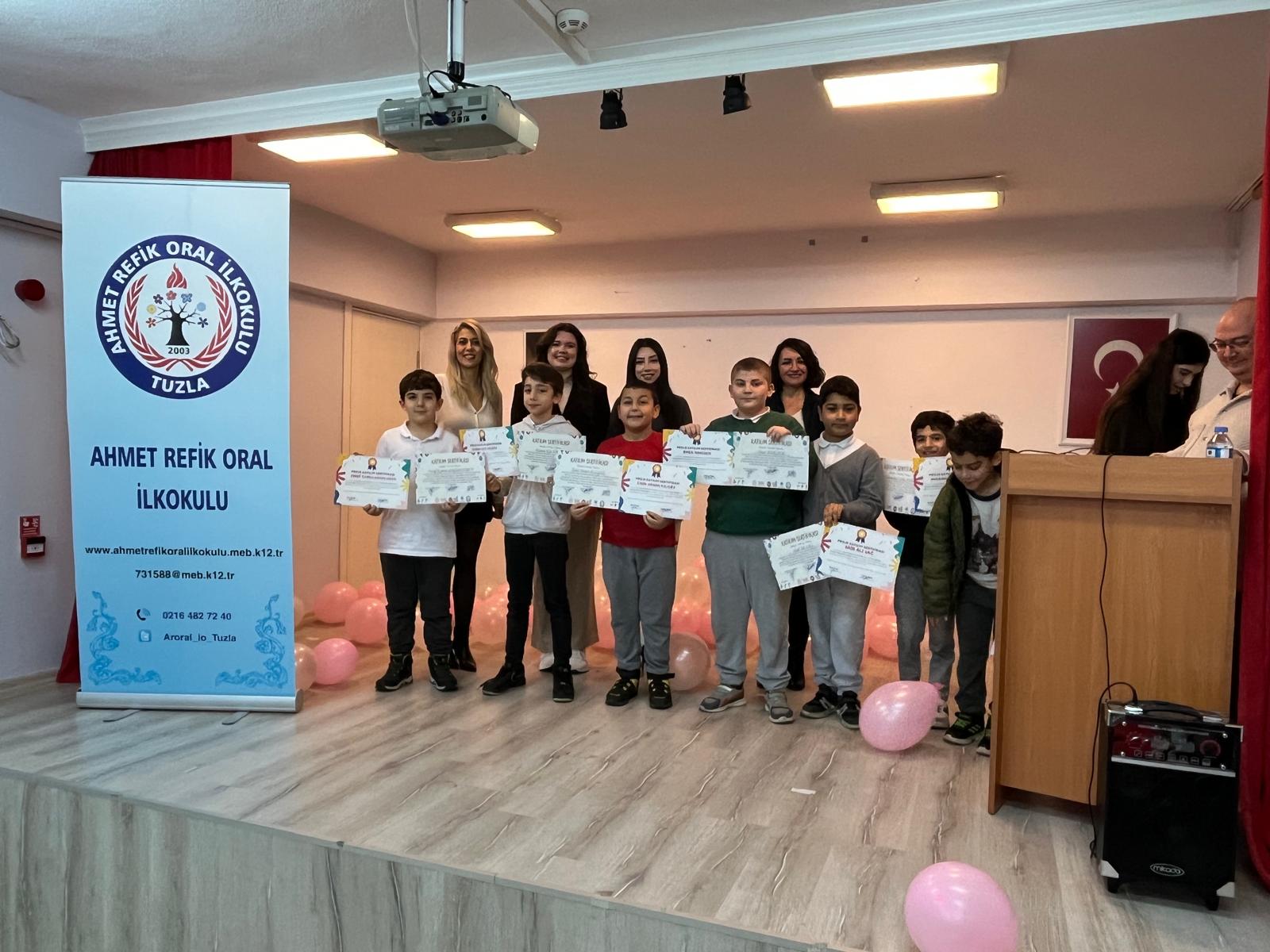 Bilgisayar Teknolojileri Bölüm Başkanımız Öğr. Gör. Alper Çeltikçi liderliğinde gerçekleştirilen dönem içi atölye etkinliklerinin ardından düzenlenen sertifika töreni, kurumsal ve samimi anları bir arada yaşattı. Projeyi başarıyla tamamlayan ilkokul öğrencilerine resmi katılım belgeleri, Meslek Yüksekokulu Müdürümüz Dr. Öğr. Üyesi Işılay Bilgiç ve Ahmet Refik Oral İlkokulu Müdürü Arzu Yoldaş tarafından takdim edildi.