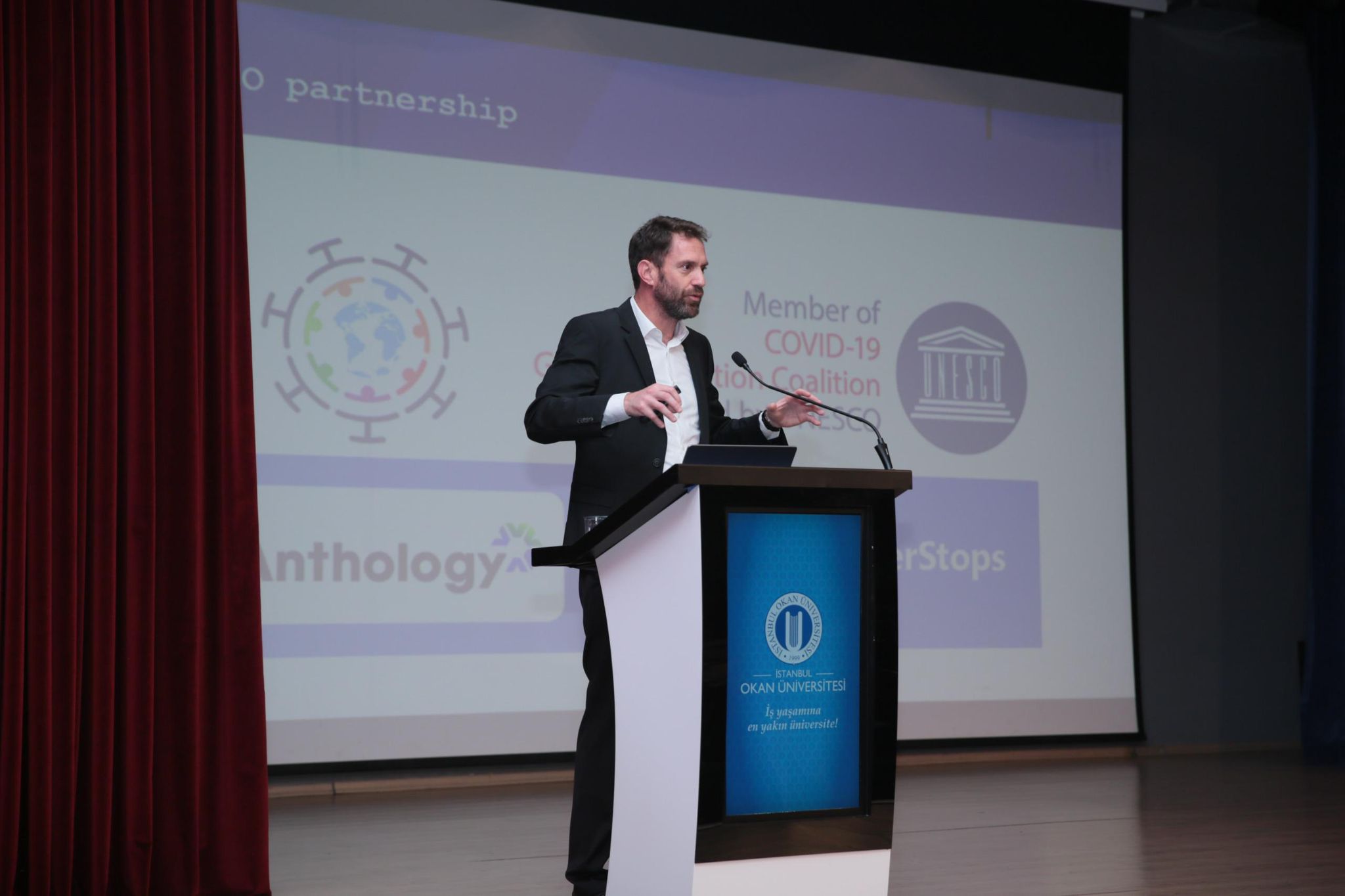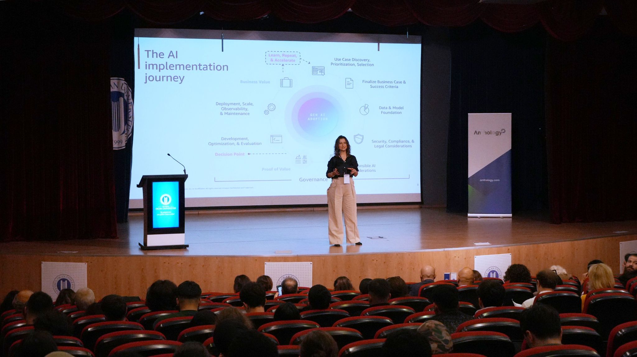 Anthology Ortadoğu ve Afrika Başkan Yardımcısı Nicolas Albouze konuşmasında Spotify’ın 150 günde, Instagram’ın 75 günde, Chatgpt’nin ise sadece 5 günde 1 milyon kullanıcıya ulaştığı hatırlatmasını yaptı. Yapay zekânın, artık geri döndürülemeyecek bir dönüşümün sembolü haline geldiğini belirtirken yapay zekâyı lambanın içinden çıkan cine benzetti ve “Artık onu tekrar içeri tıkamayız” dedi. Albouze konuşmasını “Geleceğe hazırlamak istediğimiz gençler, yarının iş dünyasında yapay zekâyı işlerinin doğal bir parçası olarak kullanmak zorunda kalacaklar. Kaçış yok. Yapay zekâ kalıcı. Beraberinde büyük fırsatlar getiriyor, ama aynı zamanda önemli riskleri de barındırıyor. Bu yüzden bu teknolojiyi dışlamak yerine, kucaklamamız gerekiyor” sözleriyle bitirdi.