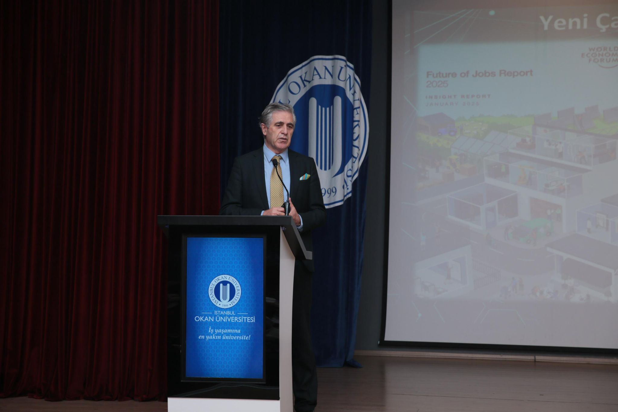 Sözlerine, “Gençlik bugün yapay zekâ ile bir yarış içinde. Bu yarışı doğru biçimde yönlendiren gençler geleceğin iş dünyasında güçlü konumlar elde edecekler. Ancak bu dönüşüme uyum sağlayamayanlar için istihdam alanına girmek giderek zorlaşacak. Özellikle 22-25 yaş aralığındaki gençler açısından iş skalası daralıyor” diyerek devam etti.