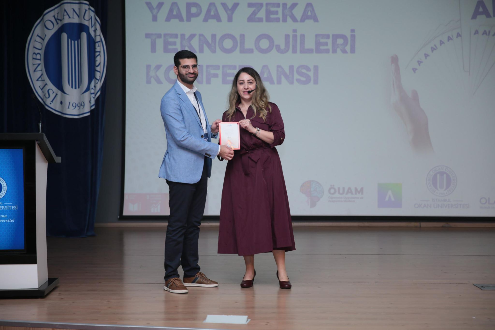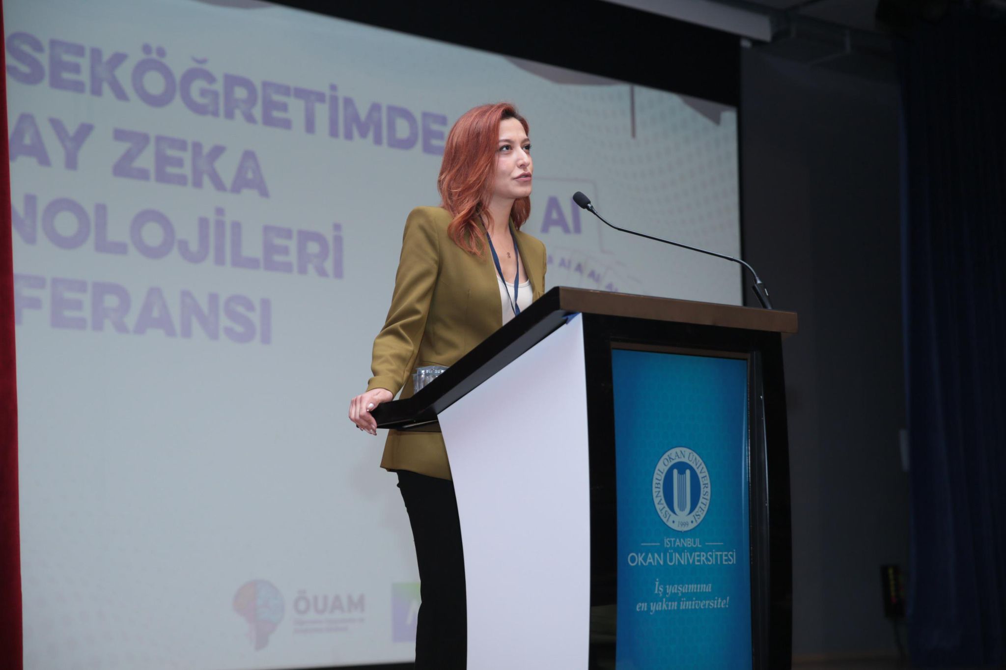 Konferansın son konuşmacısı olan Üniversitemiz Araştırma Görevlisi Begüm Gündüz, üniversitede yapay zekâ alanında yürütülen çalışmaları aktardı.