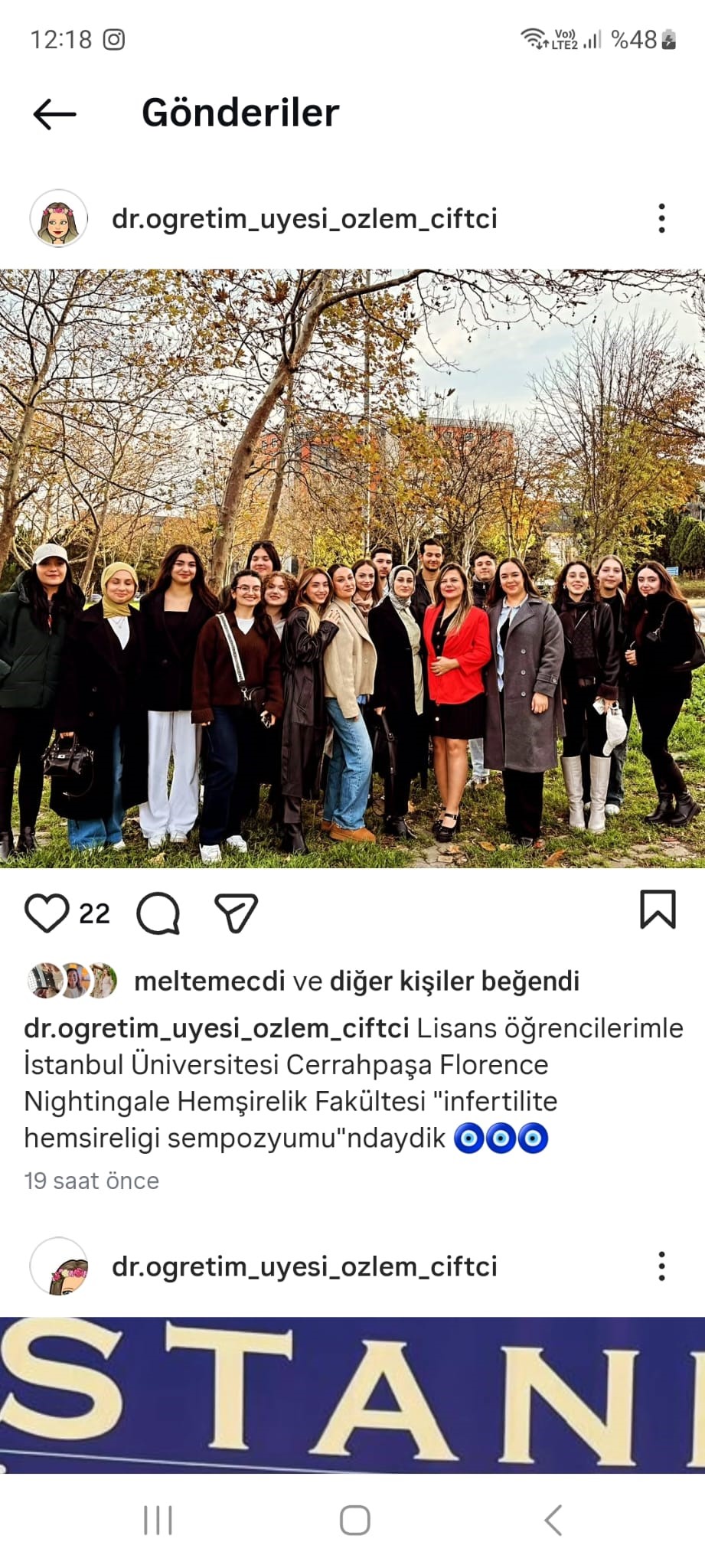 Dr. Öğretim Üyemiz Özlem AKGÖL,Lisans öğrencilerimizle 11.12.2025 tarihinde İstanbul Üniversitesi Cerrahpaşa Florance Nightingale Hemşirelik Fakültesi “İnfertilite Hemşireliği Sempozyumu”’na katılım gerçekleştirmişlerdir.
