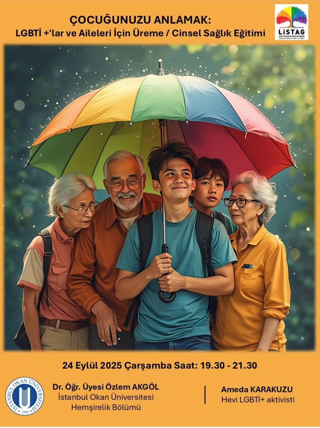 24 Eylül 2025 Çarşamba 19.30-21.30 arasında Dr Öğretim Üyesi Özlem AKGÖL LGBT +’lar ve aileleri için Cinsel Sağlık Eğitimi gerçekleştirmiştir.