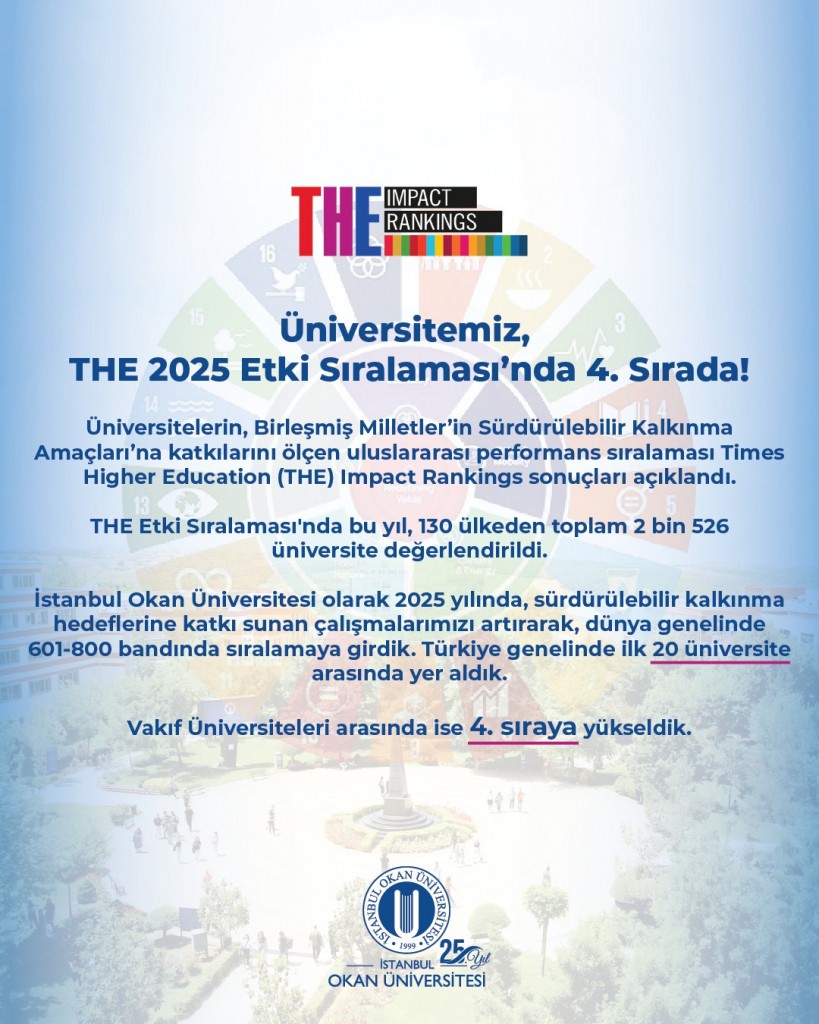 Üniversitemiz, THE 2025 Etki Sıralaması’nda 4. Sırada!