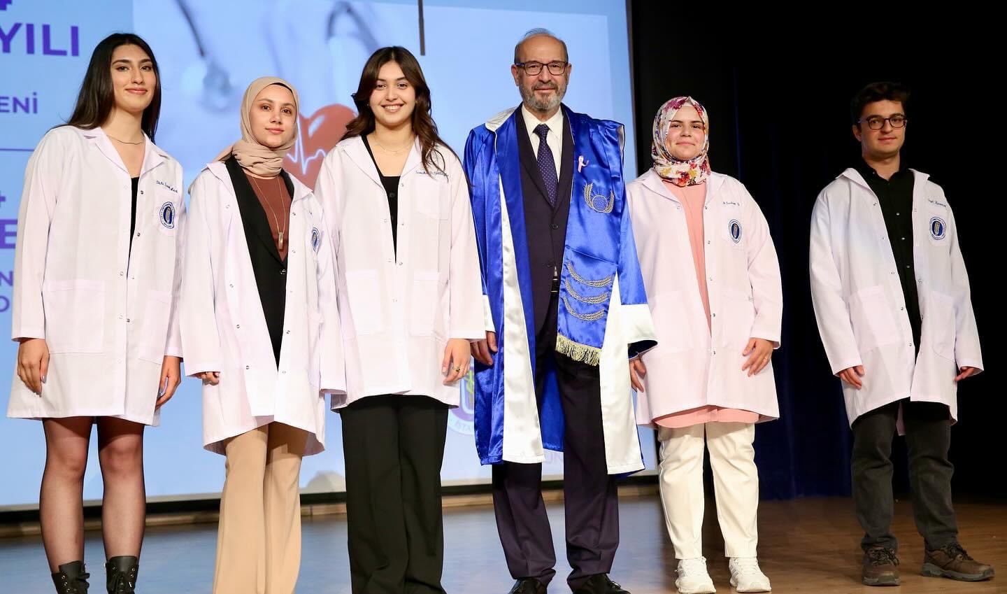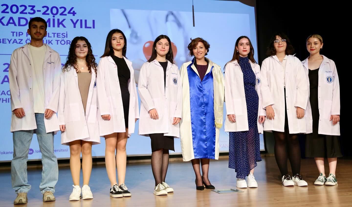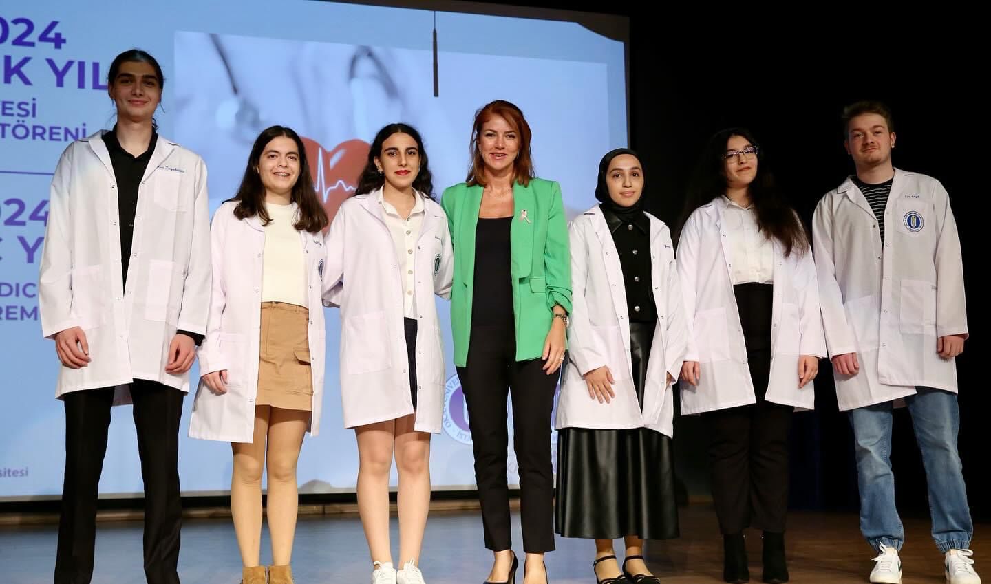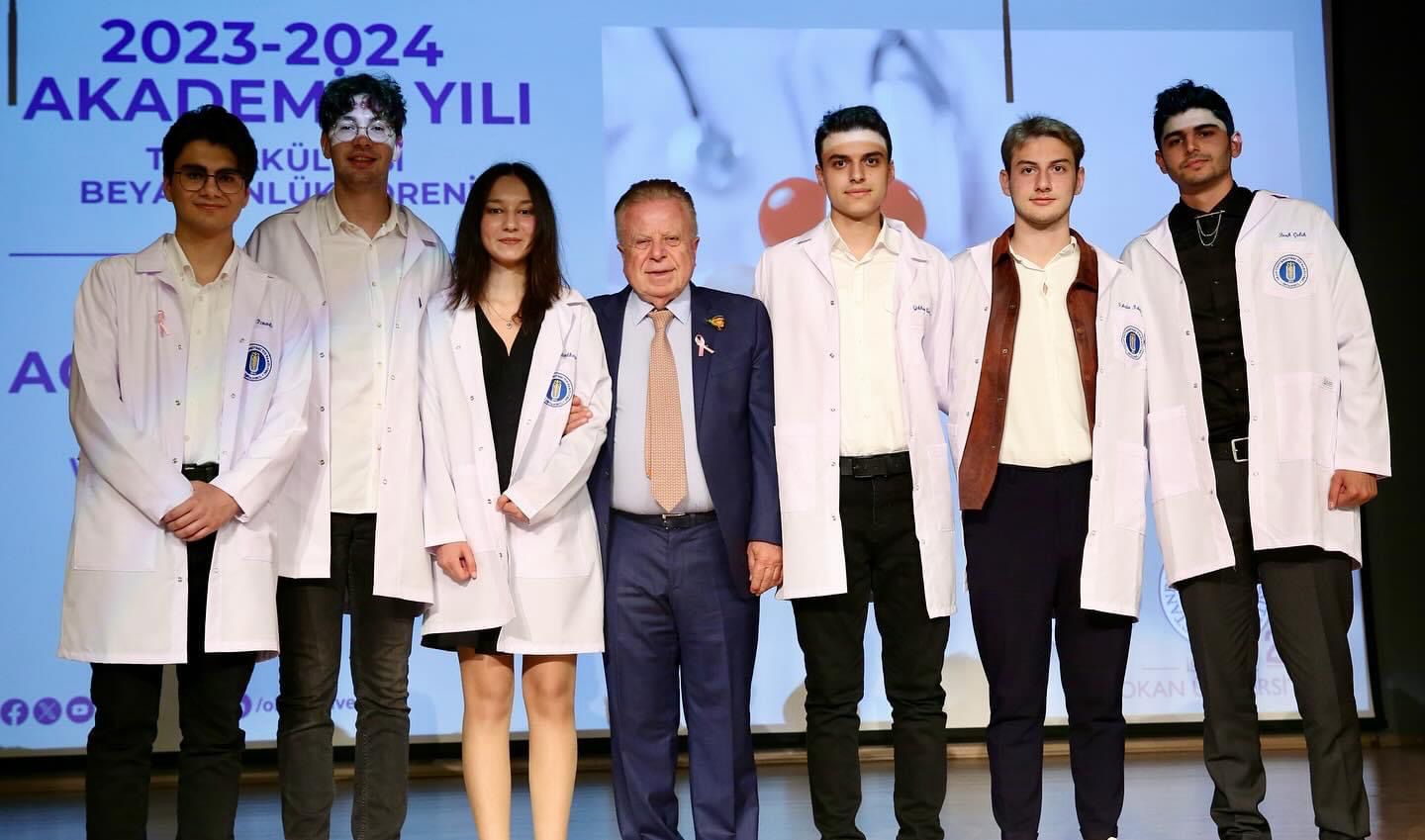 Öğrencilerimize önlüklerini Mütevelli Heyet Başkanımız Bekir Okan, Mütevelli Heyet Başkan Yardımcımız Işıl Okan Gülen, Rektör V. Prof. Dr. Güliz Muğan, Rektör Yardımcılarımız ve Tıp Fakültesi Dekanımız Prof. Dr. Selçuk Mercan giydirdi.